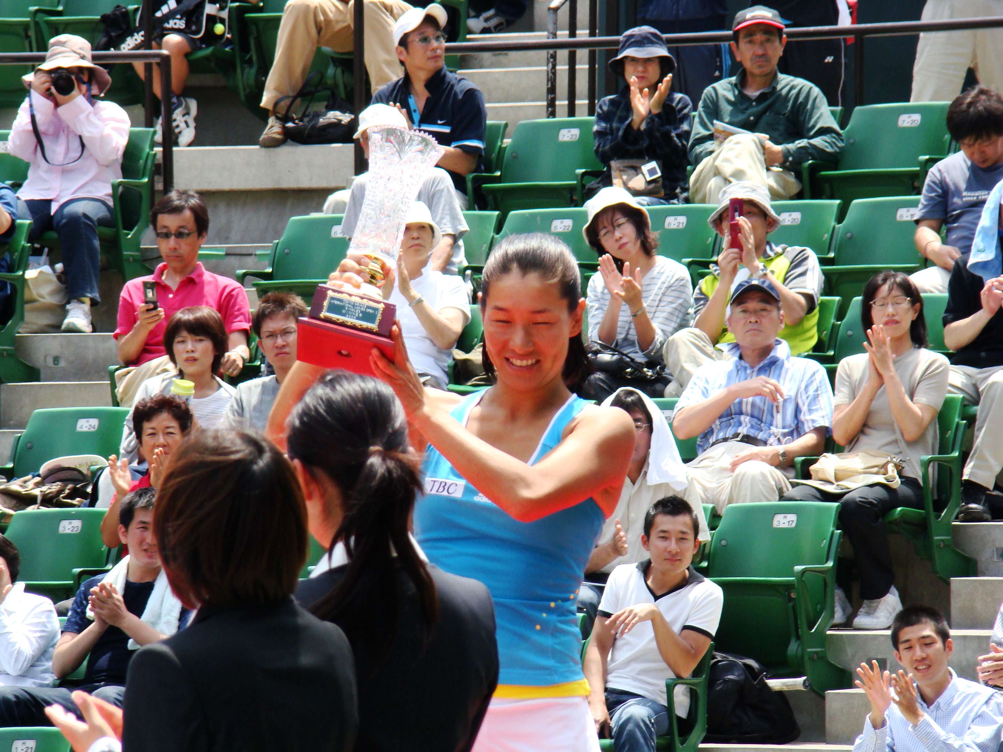2008년, 도쿄 아리아케 국제 여자 오픈에서 우승하여 트로피를 받는 크루름 이 date 기미코