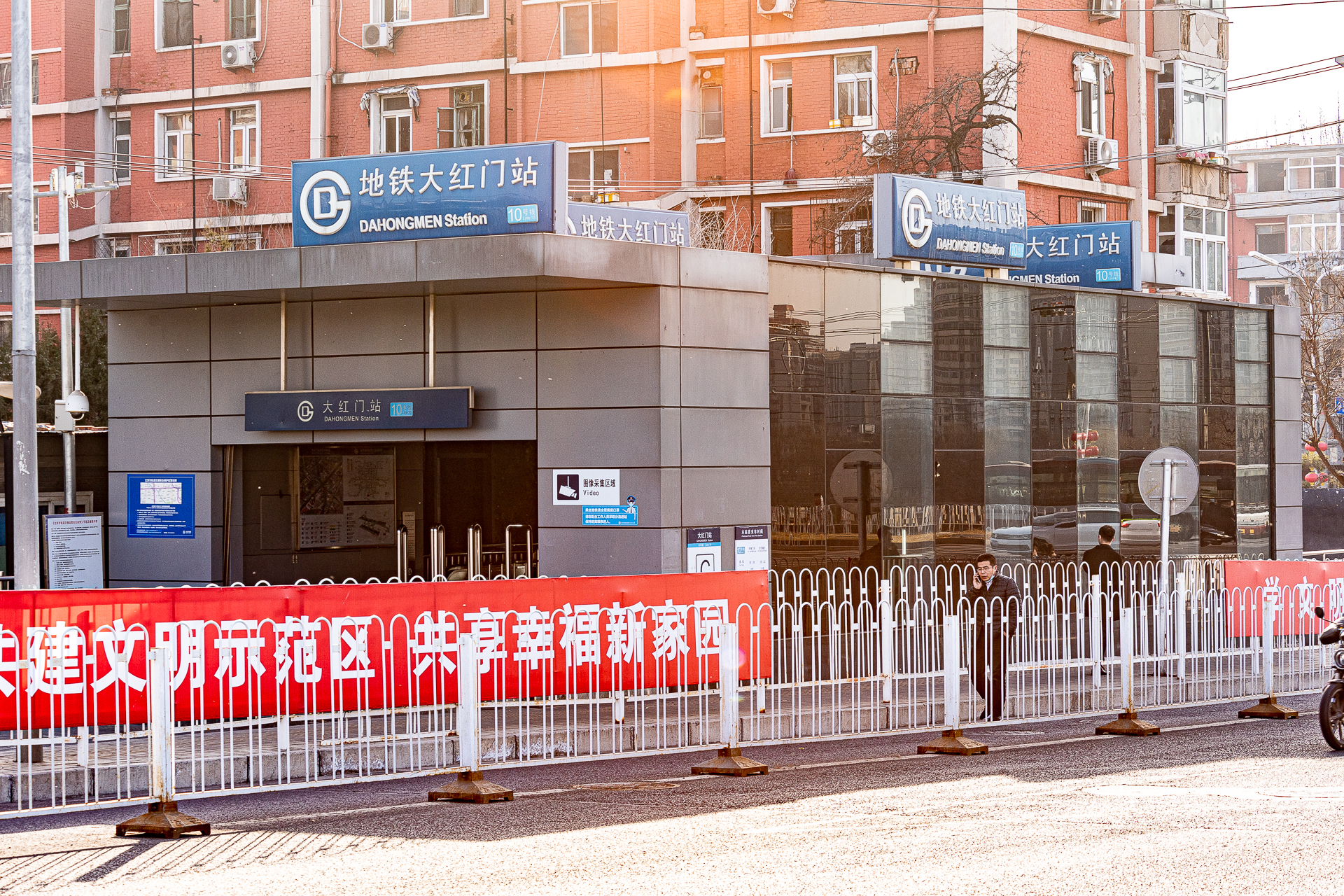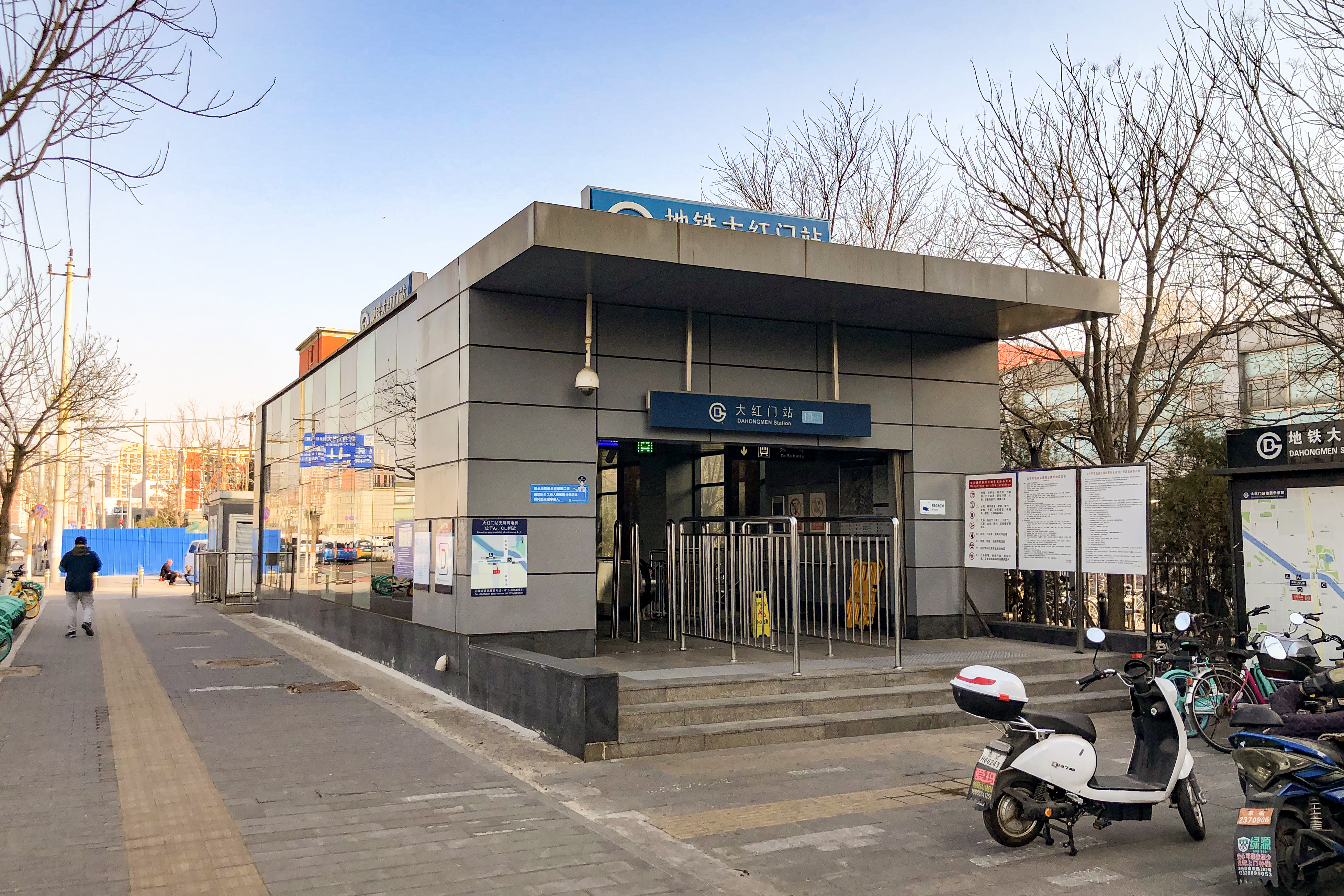 다훙먼역은 중화인민공화국 베이징 지하철 10호선과 8호선이 만나는 지하철역이다. 10호선 부분은 지하 2층, 8호선 부분은 지하 3층의 섬식 승강장으로 구성되어 있다. 10호선 대합실은 지하 1층에, 8호선 대합실은 지하 2층에 위치하며, 두 층은 환승 통로로 연결된다. 현재 A1, A2, C2의 3개의 출구가 있으며, 난위안로와 린훙로 교차로에 위치한다.