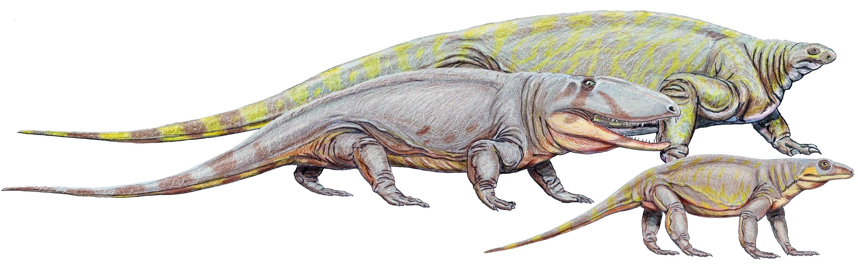 많은 수가 페름기의 잔존 세력이었지만, 트라이아스기의 단궁류도 생태계를 구성하는 데 중요한 존재였다.[71]