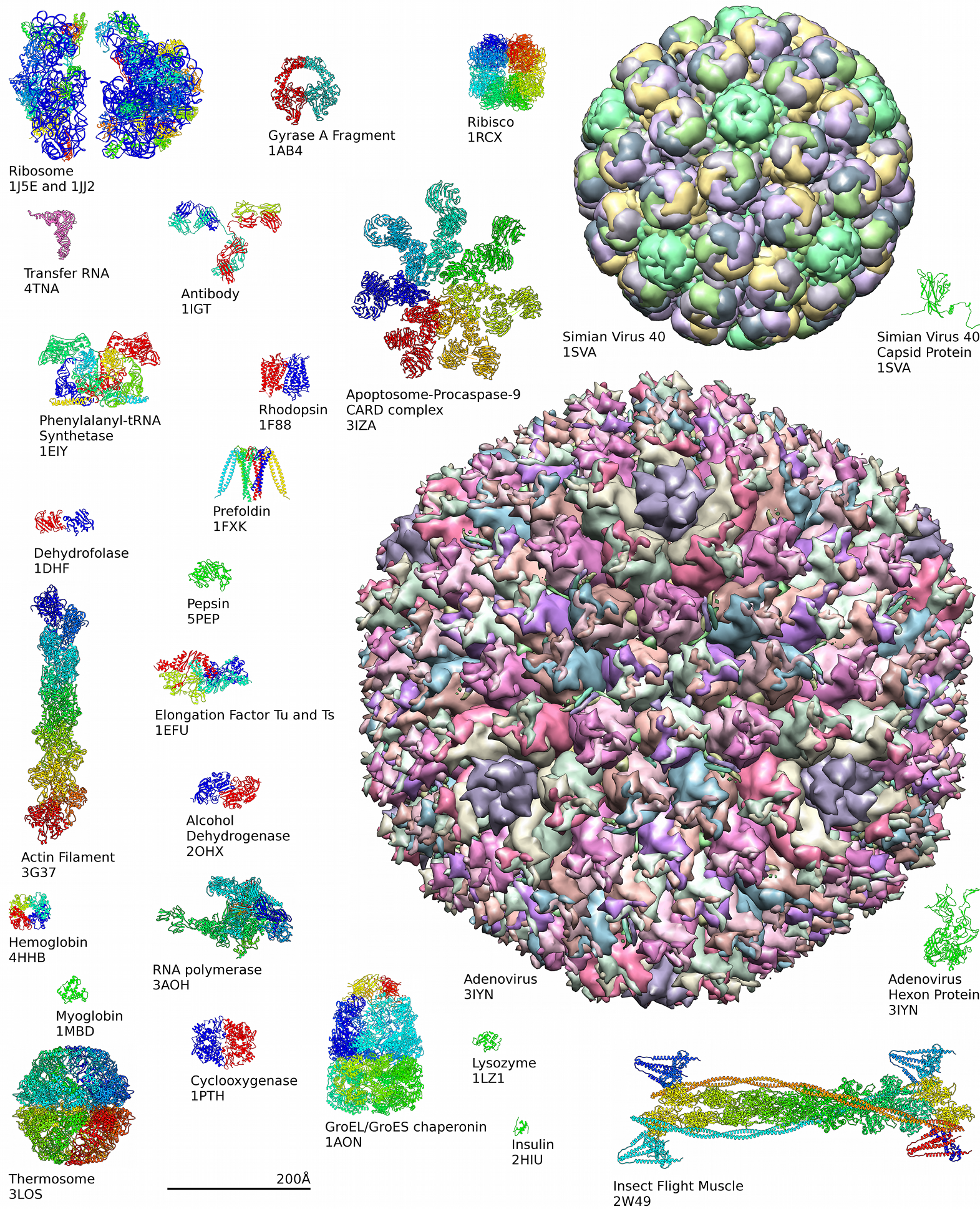 대부분의 구조는 X선 회절법으로 결정되었으며, NMR 분광법, 전자 현미경 등으로 결정된 구조도 포함된다.[16]