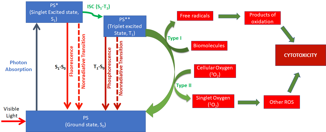 단일항 산소는 광역학 치료에서 활성 종이다.