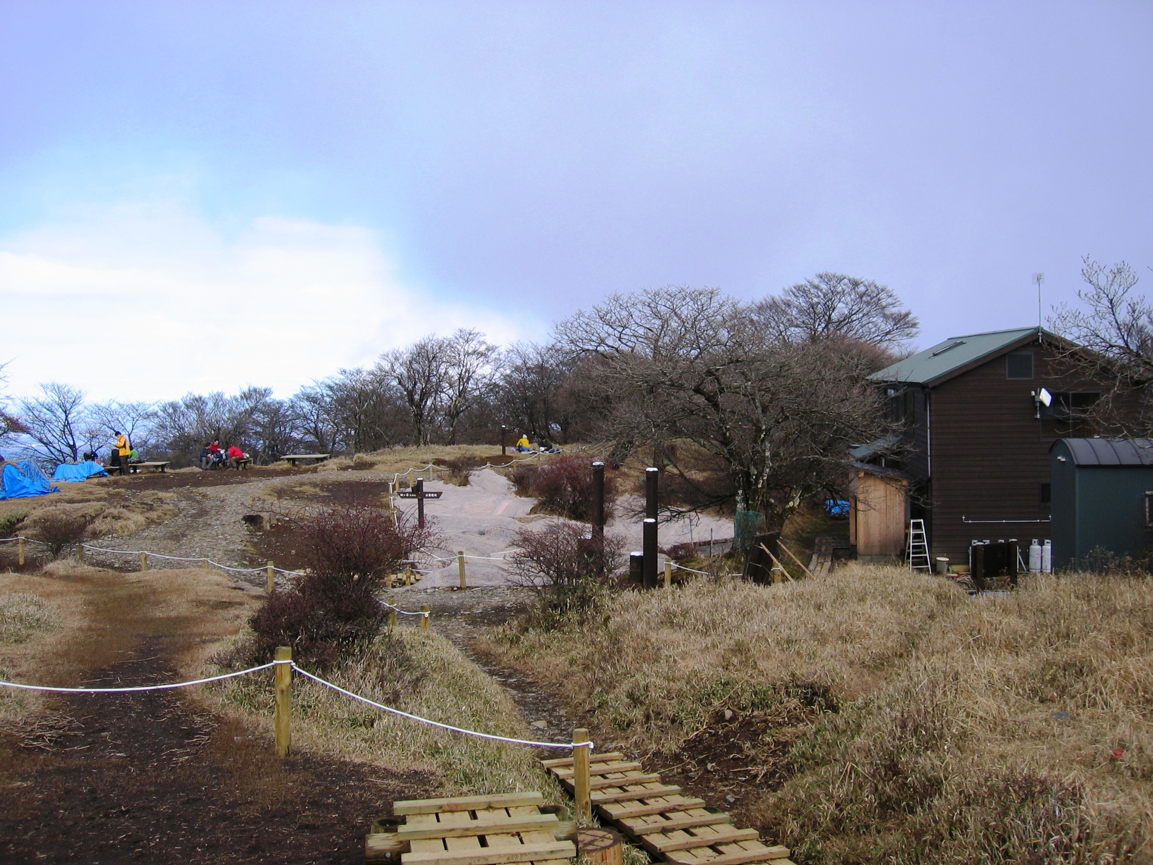 산꼭대기에 산막 '산장'이 있다. 연중 영업하며, 2004년에 건물을 재건축했다. 숙박 요금은 숙식 불포함 6000JPY, 조식 1200JPY, 석식 1800JPY이다(2023년 5월 기준).[6] 자취실은 없고, 정원은 30~40명, 물터는 없다.2. 2. 주요 등산로