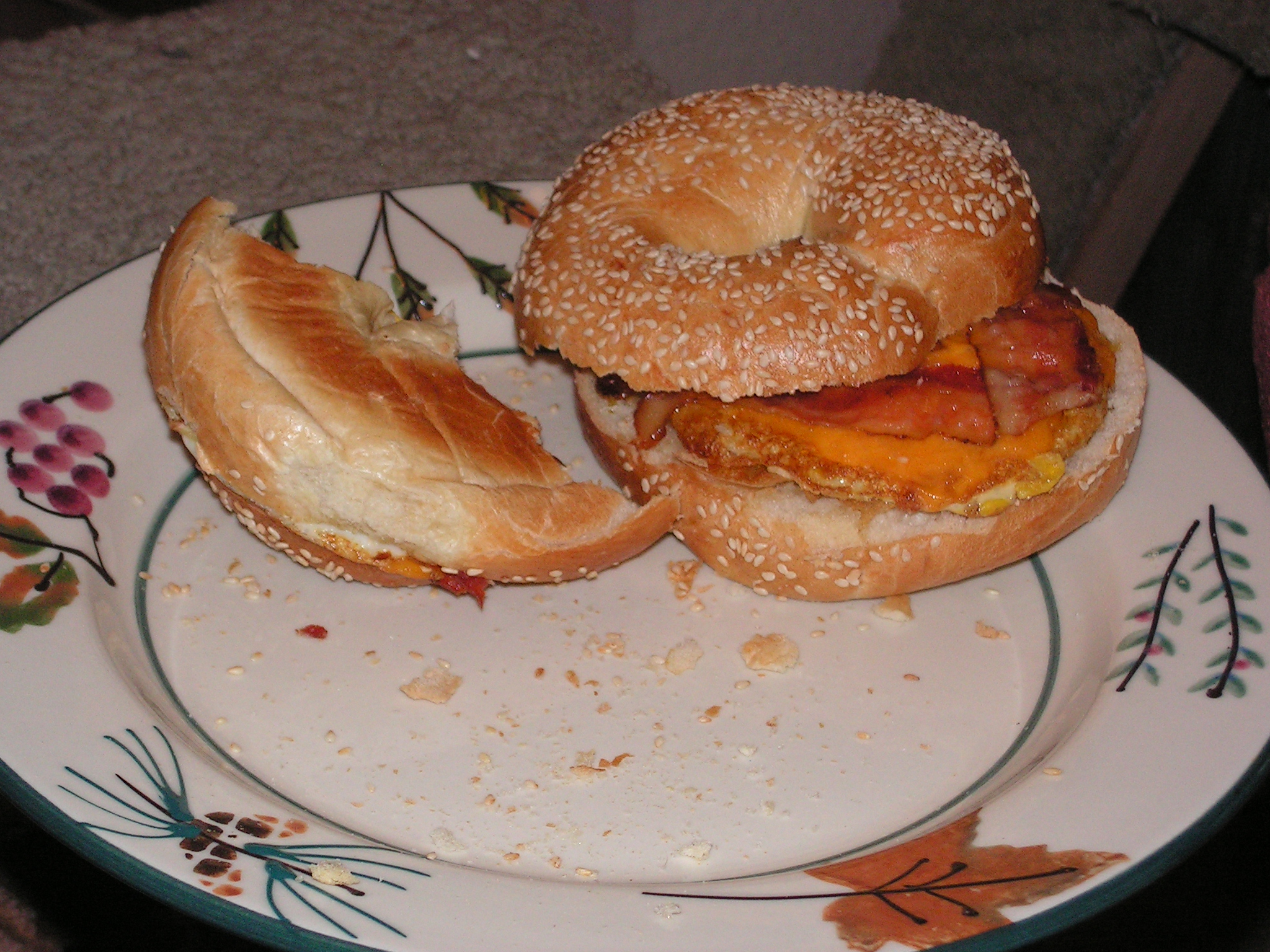 제1차 세계 대전 이후 영국군에게 인기 있는 간식이었던 "에그 밴조"(egg banjo)는 두꺼운 빵 두 장 사이에 흐물흐물한 달걀 프라이를 넣은 샌드위치이다.[6] 빵에는 버터나 마가린을 바르기도 하며, 주로 "건파이어"(gunfire, 홍차에 럼주를 넣은 음료)와 함께 먹는다. 이 샌드위치 이름의 유래에 대한 유명한 설명으로는, 한 손으로는 샌드위치를 옆으로 들고 다른 손으로는 흘러내린 달걀을 닦아내는 모습이 보이지 않는 밴조를 연주하는 것처럼 보인다는 데서 유래했다는 것이다.[7][8]2. 1. 2. 미국