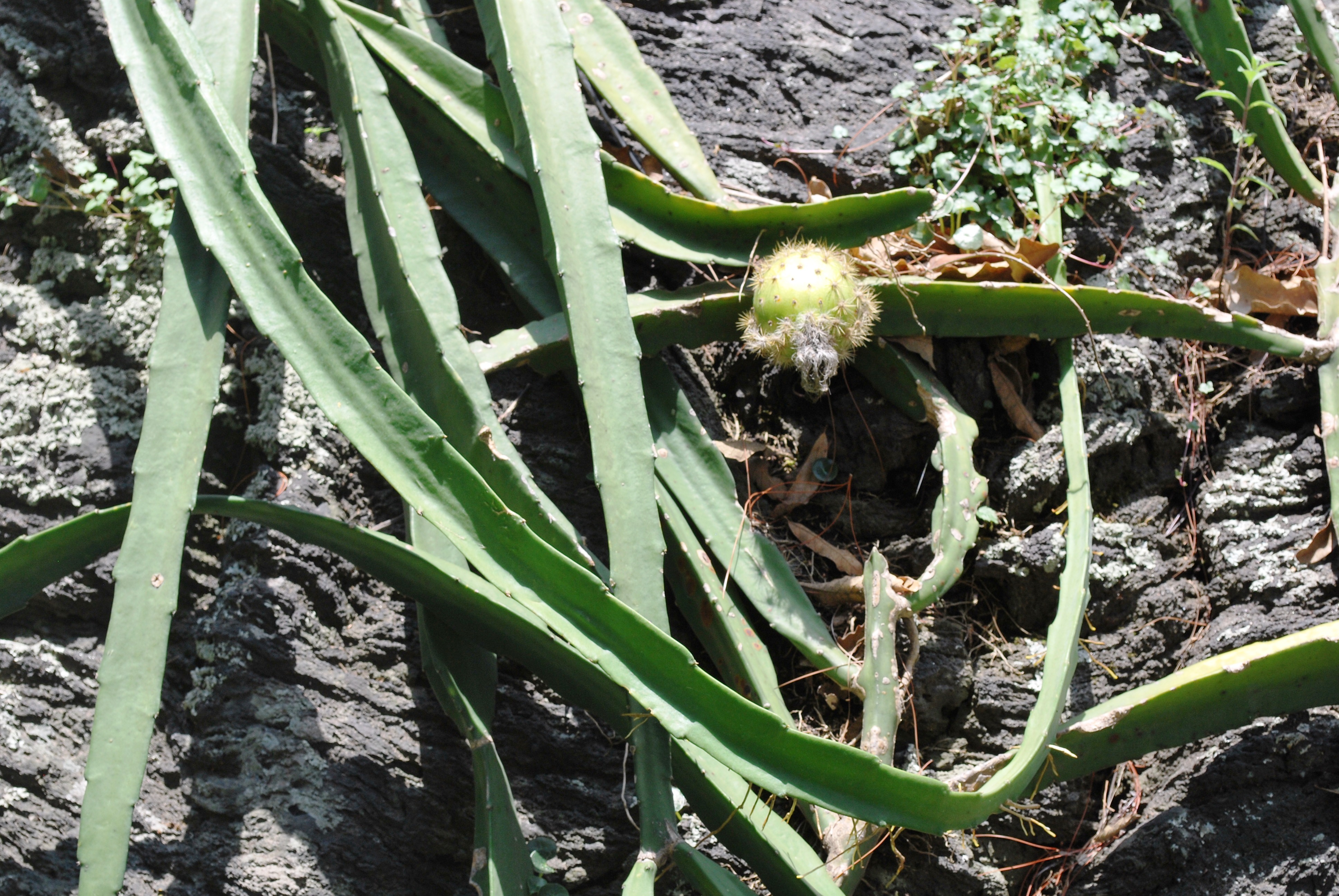 줄기는 녹색이며, 가장자리는 물결 모양이고 각질이다. 꽃은 25cm 에서 30cm 길이이며, 흰색이며 녹색 바깥쪽 꽃덮이와 포엽이 있다. 열매는 붉은색이며 흰색 과육을 가지고 있다.엘살바도르, 과테말라, 온두라스 및 멕시코[27]