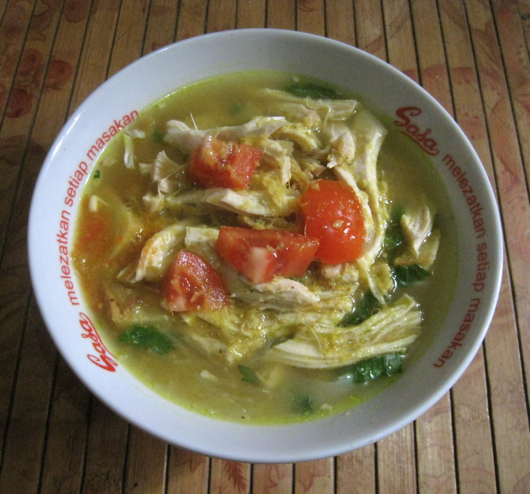 인도네시아 요리에서 닭고기국은 닭고기 조각, 감자, 녹두, 당근, 샐러리, 튀긴 샬롯을 넣은 채소와 닭고기 육수 수프인 ''사유르 솝''으로 나타날 수 있다.[32] 또한 전국적으로 흔히 발견되는 다른 닭고기국 변형으로는 소토 아얌이 있다.[33] 이는 채소와 면 또는 버미셀리를 넣은 강황 노란색 매운 닭고기국으로, 찐 쌀, 론통 또는 케투팟 조각과 함께 제공된다.[34] 싱가포르와 말레이시아에서도 소토 아얌을 먹는다.