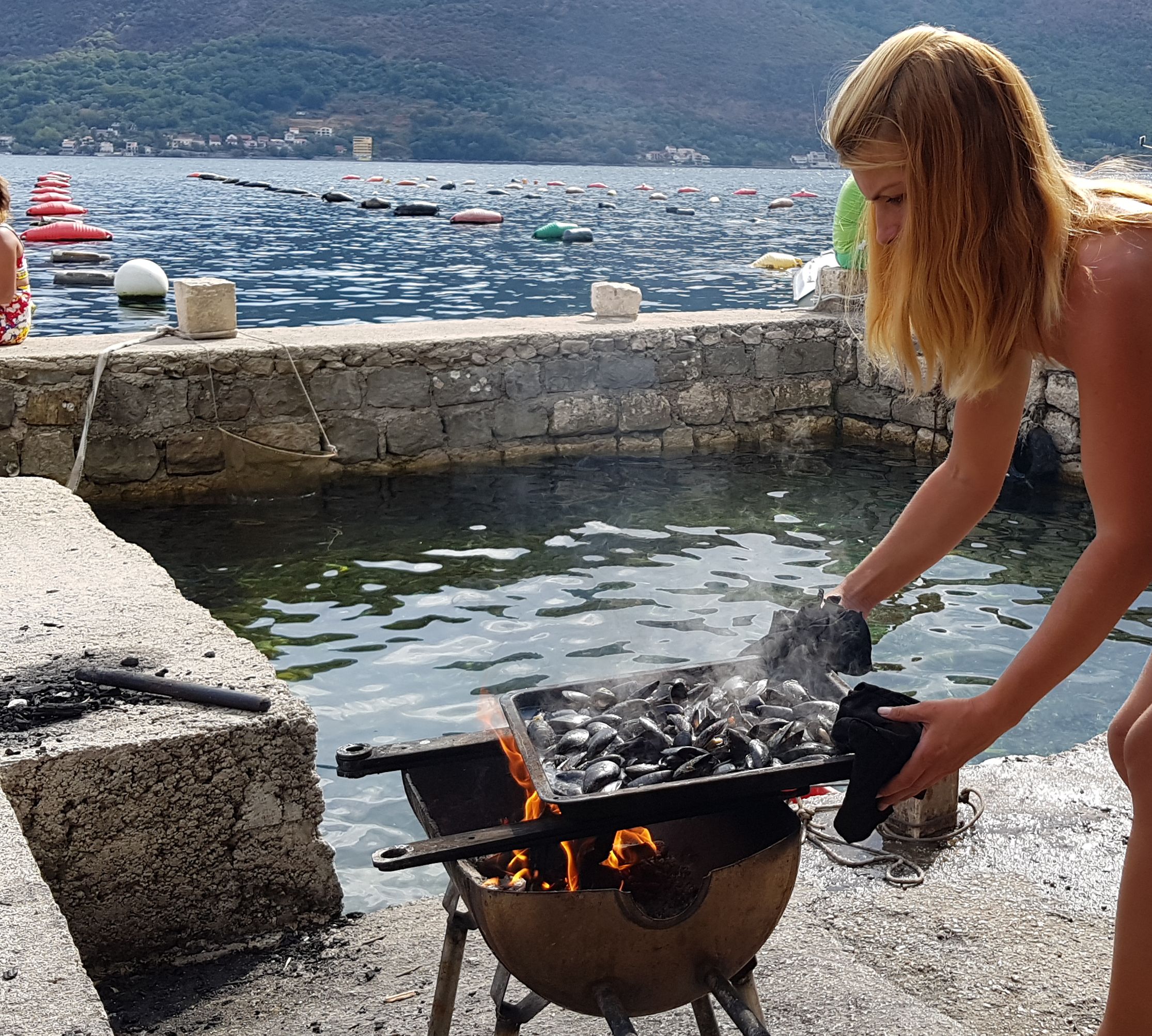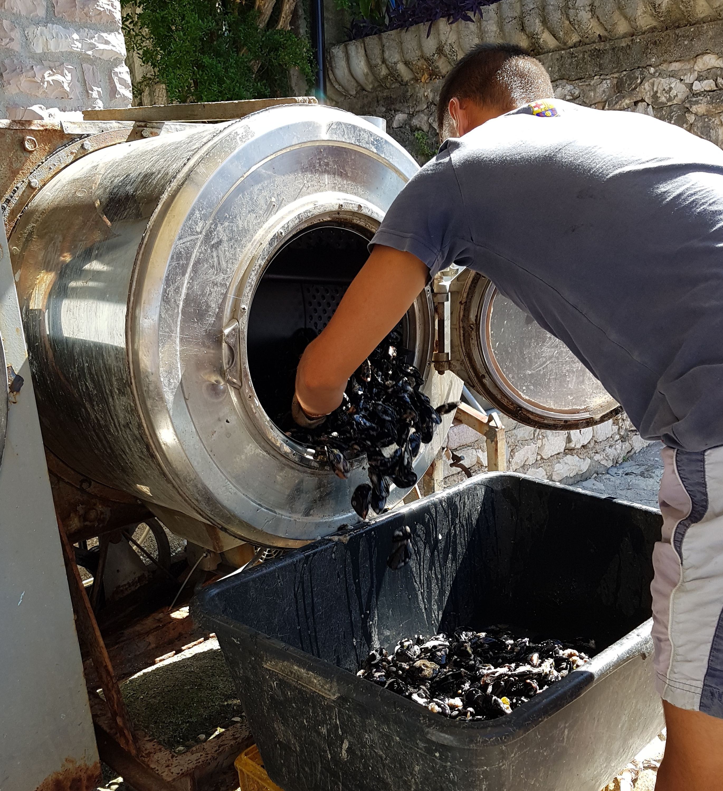 요리할 때 홍합의 부착사는 "수염"이라고 불리며, 홍합이 열린 후 요리 중에 제거된다.