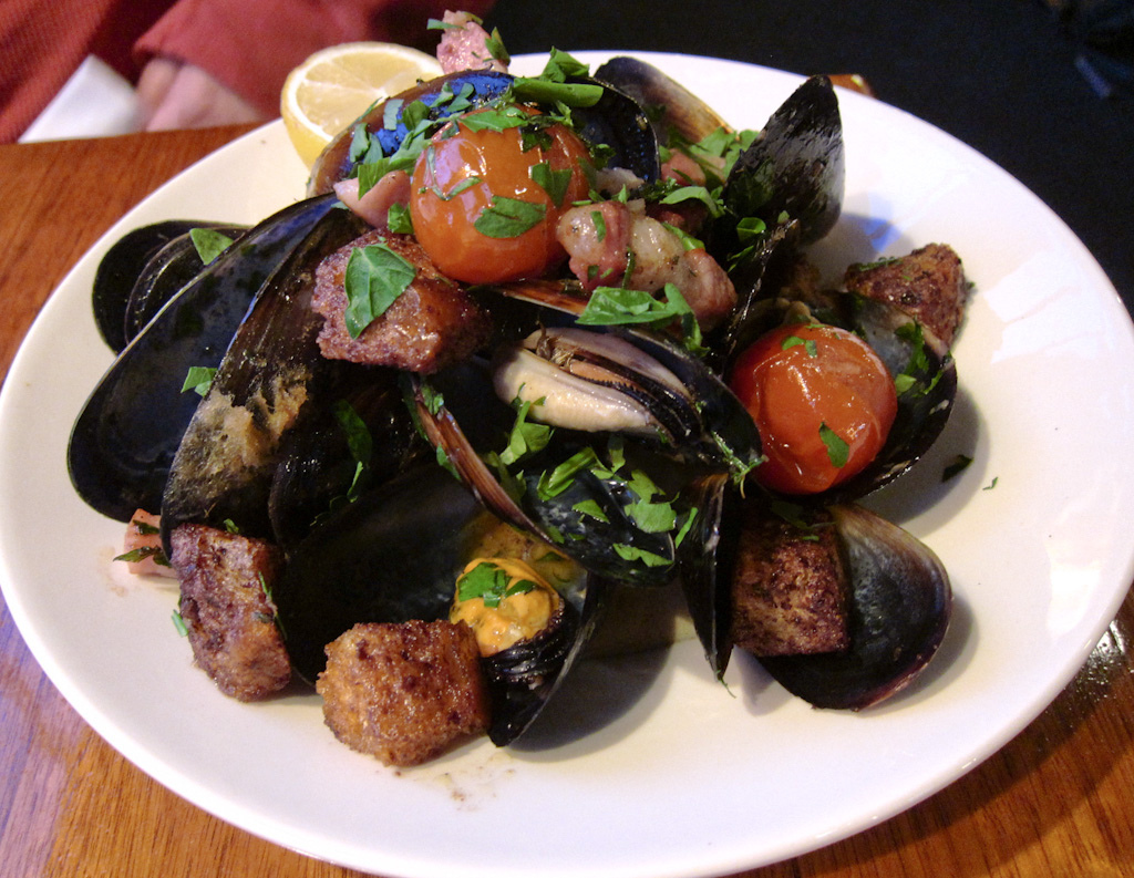 제2차 세계 대전 중 미국에서는 전시 배급과 소고기, 돼지고기 등 붉은 고기 부족으로 인해 홍합이 전국 식당과 레스토랑에서 흔히 제공되었다.[29]