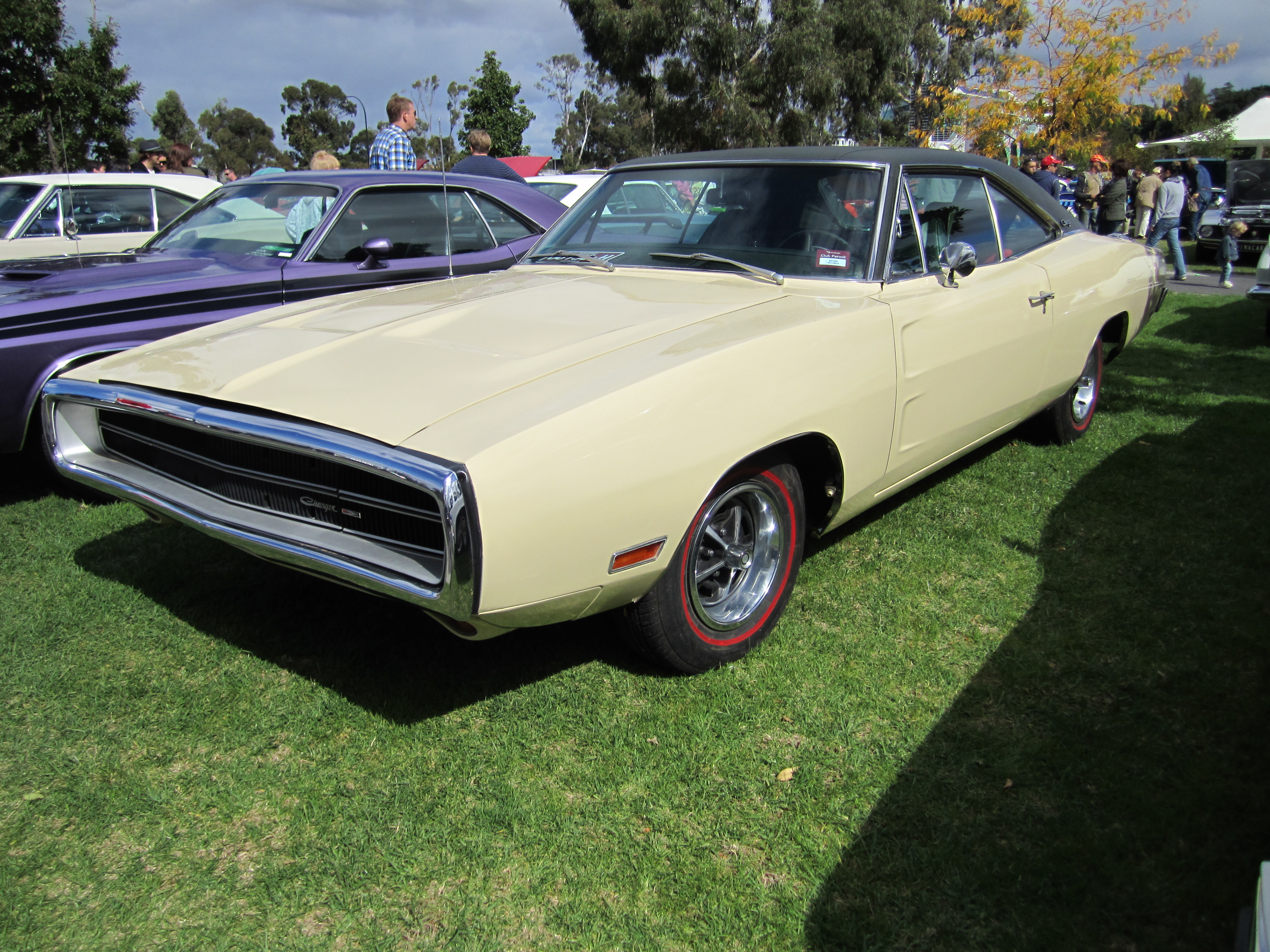 1966년, 닷지는 포드 머스탱과 럭셔리 쿠페인 선더버드 사이의 틈새시장을 공략하기 위해 중형 세단 코로넷의 B 플랫폼을 기반으로 닷지 차저를 출시했다. 초기에는 V8 엔진만 탑재되었으나, NASCAR 경주 출전 사양의 양산형으로 426 헤미 엔진을 탑재한 차저 500, 차저 데이토나도 출시되었다.[24] 1세대 차저는 라디에이터에 숨어있다 점등 시 노출되는 헤드램프를 장착한 것이 특징이다. 석유 파동으로 인해 머슬카의 인기가 시들해지면서 1978년 단종되었다. 분노의 질주 시리즈에 등장하면서 한국에서도 인지도를 높였다.1세대 차저는 고급 트림과 편안한 기능을 갖춘 럭셔리한 패스트백 하드탑을 포함했다. 이 차는 머슬 카라기보다는 올즈모빌 토로나도와 포드 썬더버드를 포함하는 세그먼트를 목표로 했다.[8]