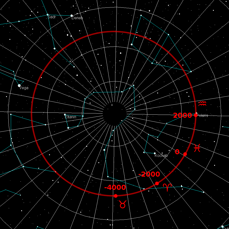 | 현재 추정 | 약 25,772년 (지구 자전축의 세차운동 주기) |