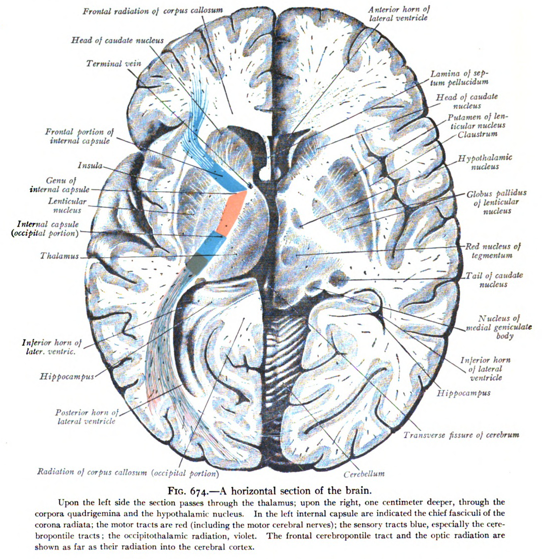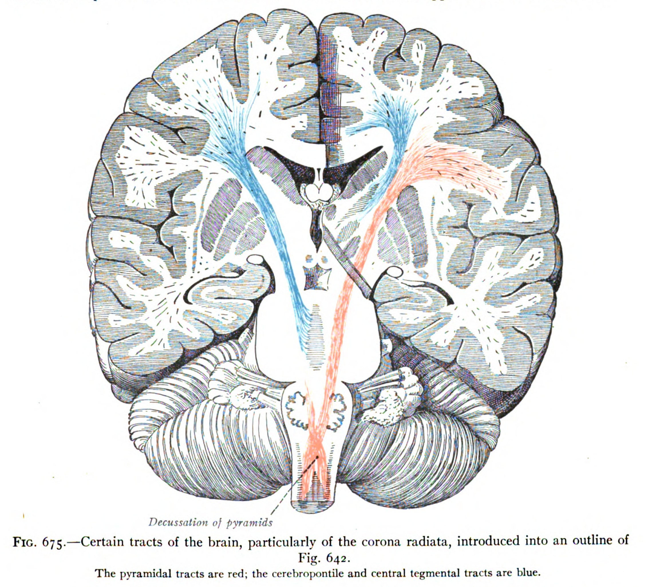 운동 섬유가 인간의 대뇌부챗살에서 체감각적으로 배열되어 있다는 증거가 있다. 뇌 손상 후, 대뇌부챗살과 속섬유막에서 피질 원심 투사의 위치를 파악하는 것은 환자의 운동 능력 및 기능 회복 가능성을 예측하는 데 도움이 된다. 대뇌부챗살 및 상부 섬유막 병변은 기능 회복이 긍정적일 가능성이 높고, 하부 병변은 상지 움직임 회복 수준이 낮을 가능성이 높다. 속섬유막의 후방 영역 병변은 운동 결손 심각도를 증가시킬 수 있다.