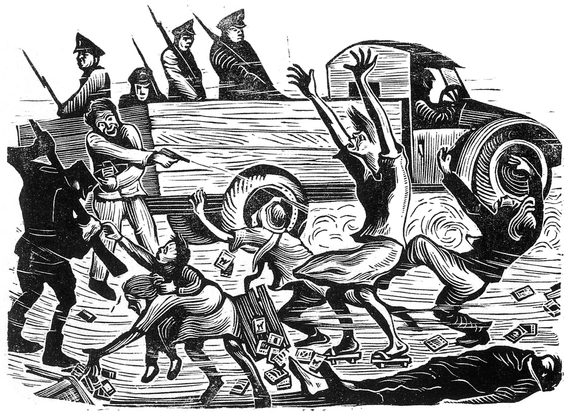 황룽찬의 목판화, 1947년 2·28 사건 학살을 묘사한 "끔찍한 검사"