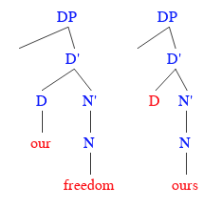 이러한 관찰은 폴 포스털과 같은 일부 언어학자들이 대명사를 뒤따르는 명사 또는 명사구가 삭제된 한정사로 간주하도록 이끌었다.[7] 다른 언어학자들은 비슷한 견해를 가지고 있으며, 대명사와 한정사를 "한정사-대명사"라는 단일 범주로 통합하거나, 한정사를 대명사의 하위 범주로 보기도 한다.