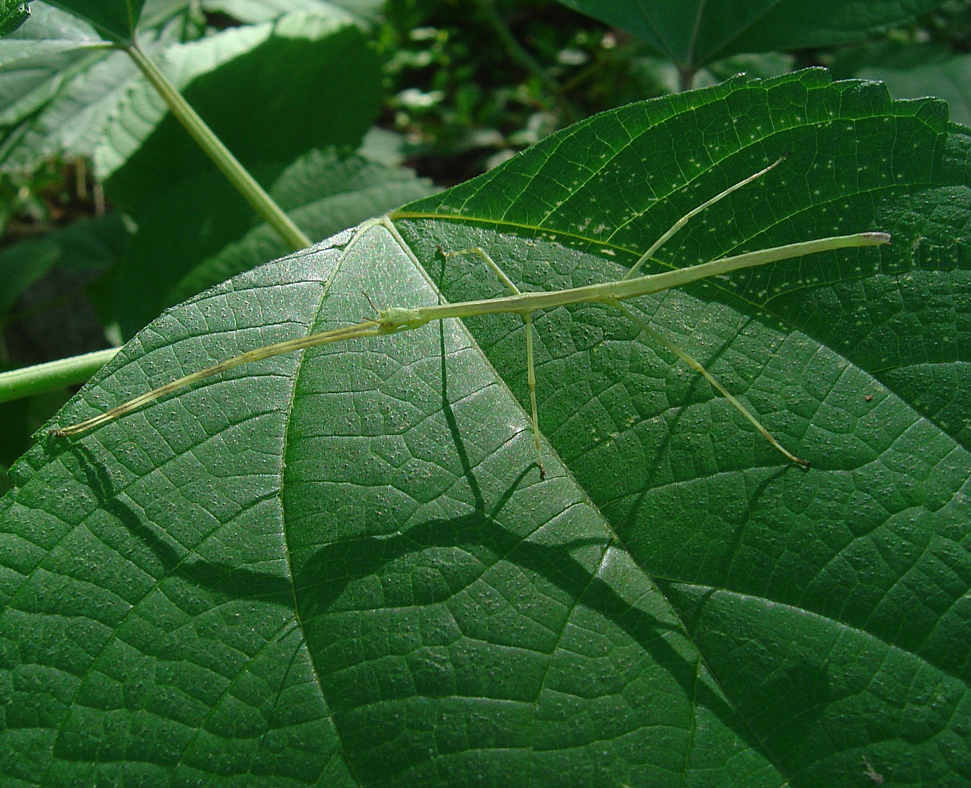 - 형태: 몸길이는 70~100mm 정도이며, 대나무처럼 마디가 있는 길쭉한 몸통과 가느다란 다리를 가지고 있습니다. 몸 색깔은 녹색 또는 황갈색입니다.