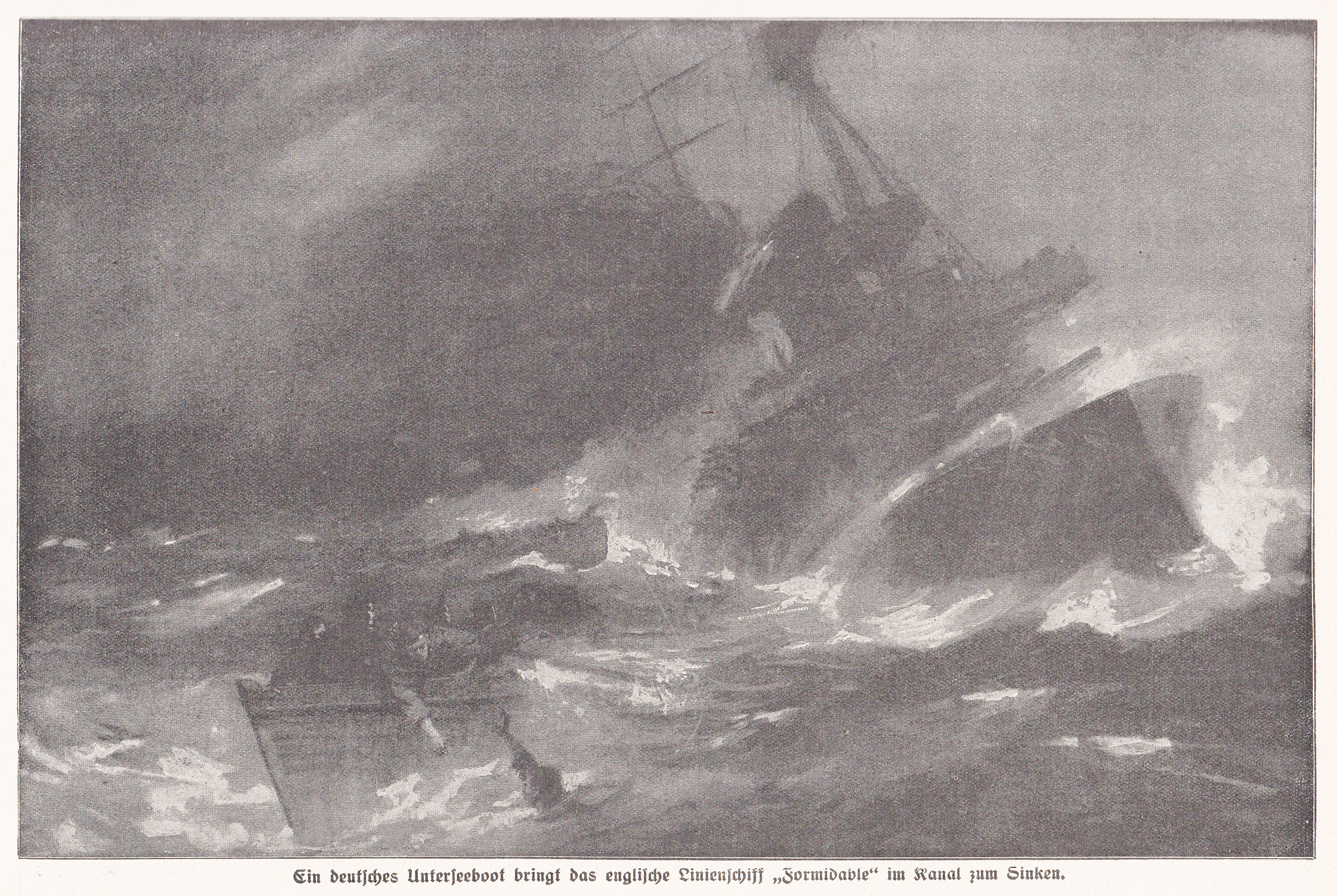 1914년 12월 31일, ''U-24''는 영국 해협에서 훈련 중이던 영국 전함 HMS ''Formidable''을 어뢰로 공격하여 격침시켰다. 이 공격으로 547명의 승무원이 사망했다.[5] 이 사건으로 채널 함대 사령관 루이스 베일리 제독은 훈련 중 적절한 예방 조치를 취하지 않았다는 비판을 받았으나, 무혐의 처분을 받았다. 베일리 제독은 이후 퀸스타운에서 대잠수함전 부대 사령관으로 뛰어난 활약을 했다.