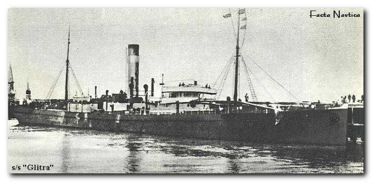 1914년 10월 20일, SS ''글리트라''는 제1차 세계 대전에서 독일 잠수함에 의해 침몰된 최초의 영국 상선이 되었다.[1] 그랑지머스에서 스타방에르로 향하던 ''글리트라''는 요하네스 펠트키르헤너(Johannes Feldkirchener) 해군 소령이 지휘하는 ''U-17''에 의해 정지 및 수색을 받았다. 이 작전은 순양함 규칙에 따라 수행되었으며, 승무원들은 ''글리트라''가 선저 밸브가 열린 채 침몰하기 전에 구명보트로 대피하라는 명령을 받았다. 잠수함이 상선을 침몰시킨 것은 역사상 처음 있는 일이었다.