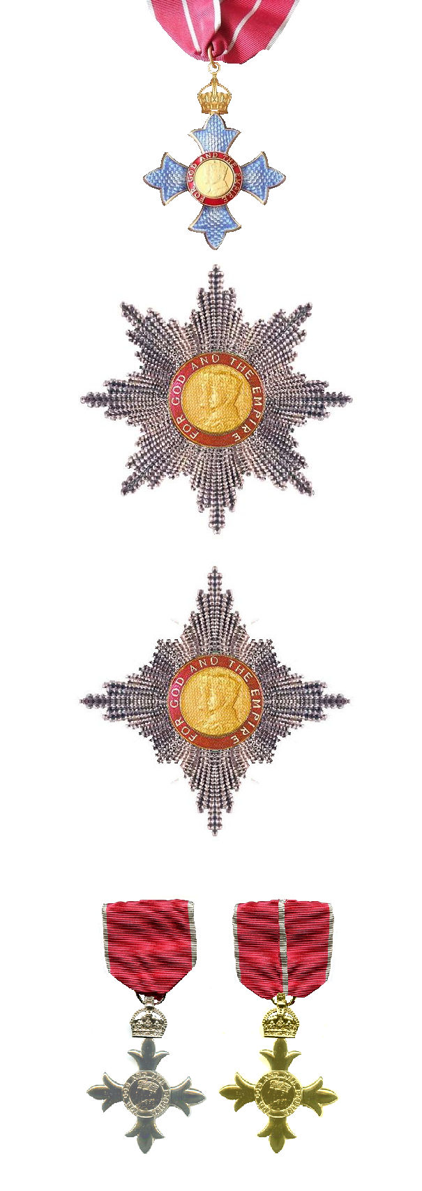 등급 | 나이트/데임 그랜드 크로스 (GBE) 나이트/데임 커맨더 (KBE/DBE) 커맨더 (CBE) 오피서 (OBE) 멤버 (MBE) |