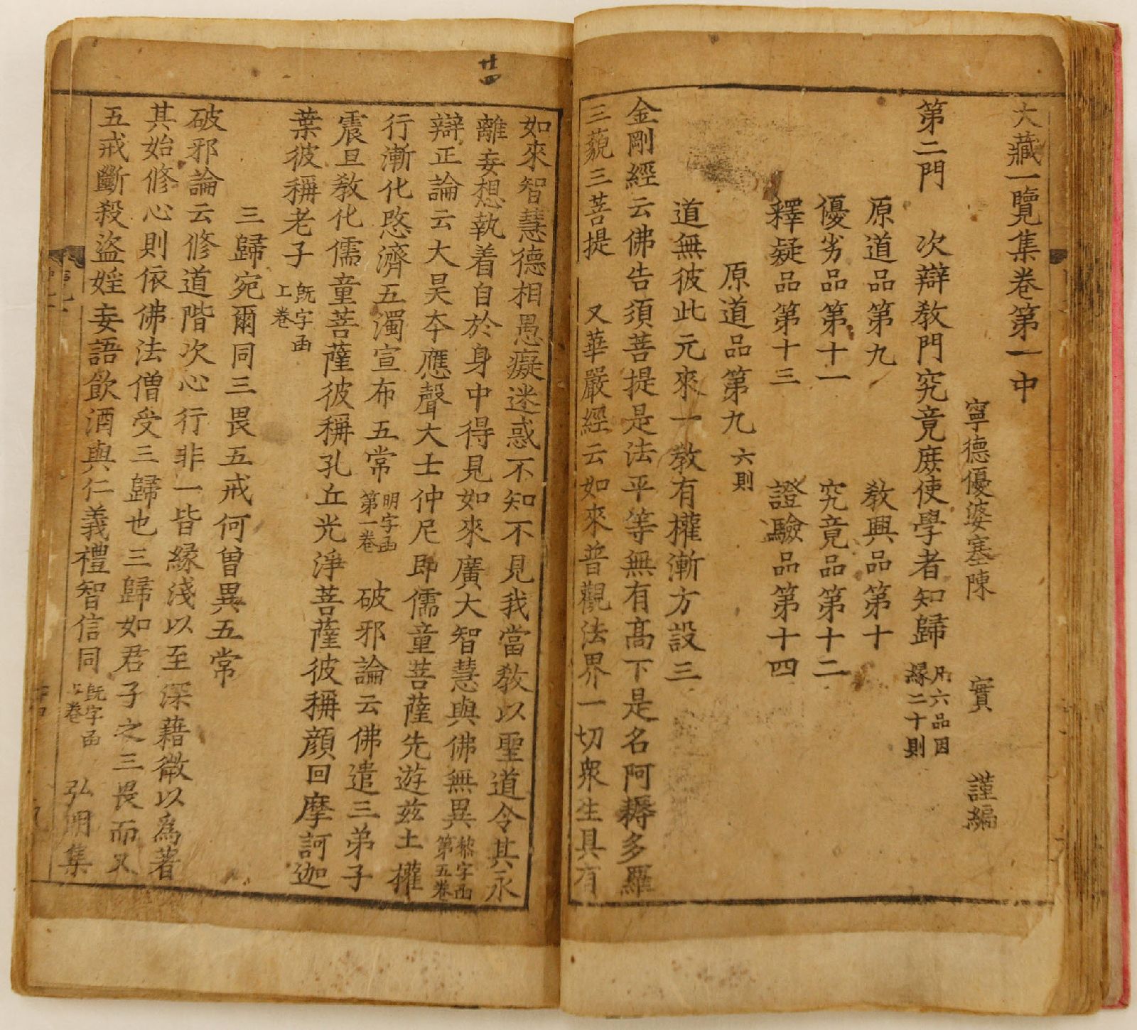 중국 송대의 진실(陳實)이 방대한 《대장경》에 포함된 여러 경전을 주제별로 분류하여 정리한 경전 목록집이다. 먼저 '문목(門目) 총류(總類)'라는 제목 아래 각 품(品)의 이름과 권수(卷數), 품수(品數) 등을 정리하였다.