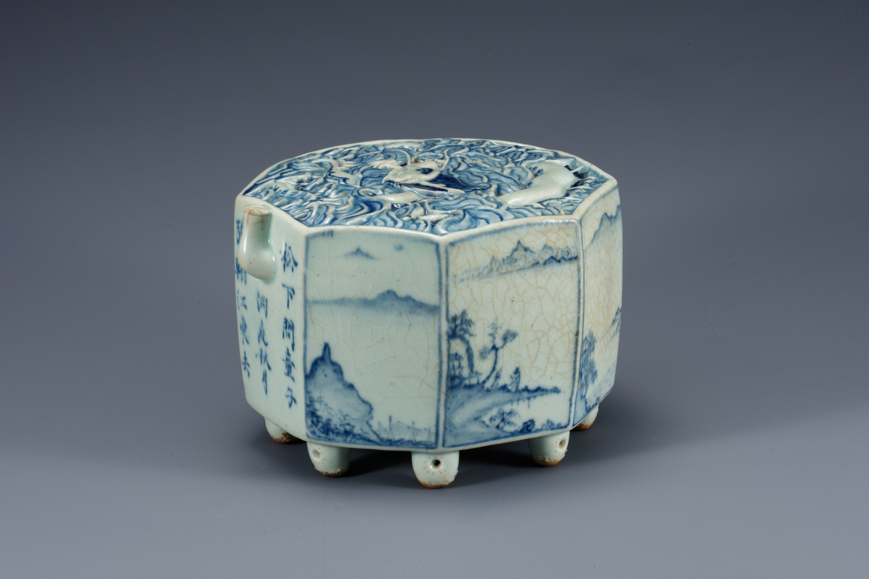 백자 청화소상팔경문 팔각연적