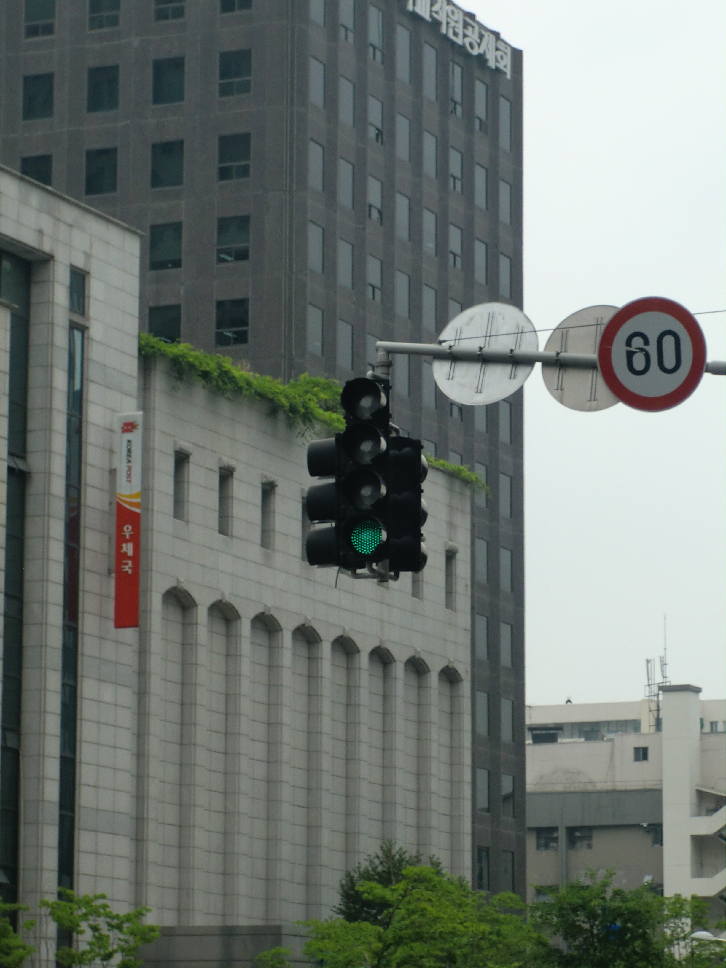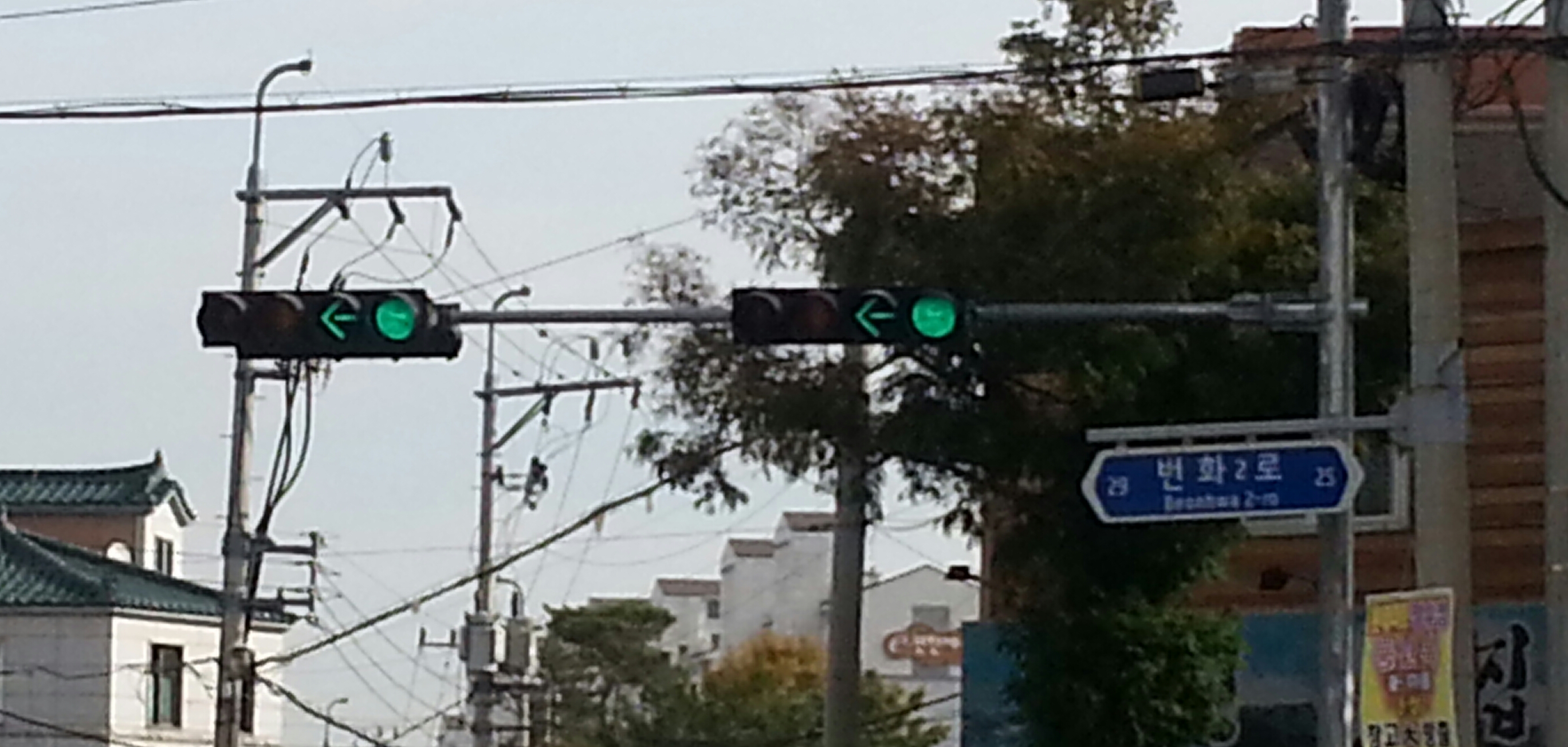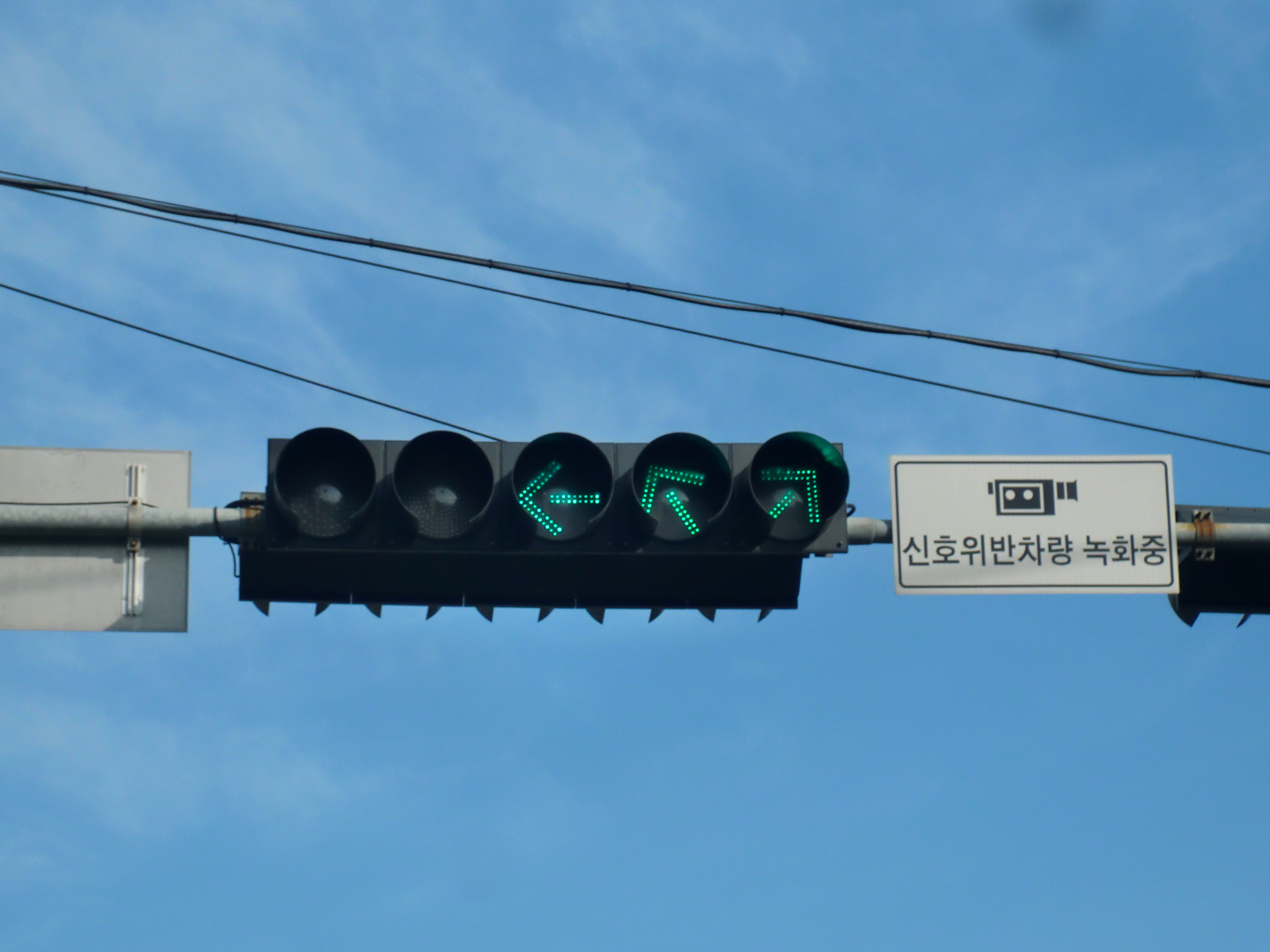 대한민국의 신호등은 차량과 보행자의 안전을 위해 다양한 종류와 기능을 갖추고 있다. 일반적으로 적색, 황색, 녹색의 3색 신호등을 사용하며, 좌회전, 우회전 등을 위한 4색 또는 5색 신호등도 사용된다. 보행자 신호등은 녹색 걷는 모습과 적색 멈춤 모습으로 표시되며, 시각 장애인을 위한 음향 신호기도 설치되어 있다. 특수 목적의 신호등으로는 자전거 신호등, 어린이 보호구역 신호등, 긴급 차량 신호등, 철도 건널목 신호등 등이 있으며, 비상 상황을 알리는 경고 신호등도 존재한다. 신호등은 측주식, 중앙주식, 현수식 등 다양한 방식으로 설치되며, 도로교통법에 따라 규정되고 관리된다. 1963년 화살표 신호등 도입, 1973년 적색 신호 시 우회전 허용, 1982년 4색 신호등 도입 등 신호 규정은 시대에 따라 변화해 왔으며, 현재는 4색 신호등 체계를 기반으로 동시 신호, 직진 후 좌회전 신호, 좌회전 후 직진 신호 등 다양한 점등 패턴을 통해 교통 흐름을 제어한다.