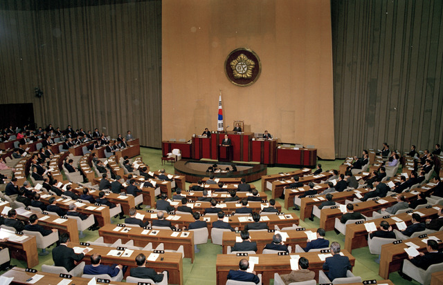 1995년 중국 국가 주석 장쩌민대한민국 국회에서 연설하는 모습