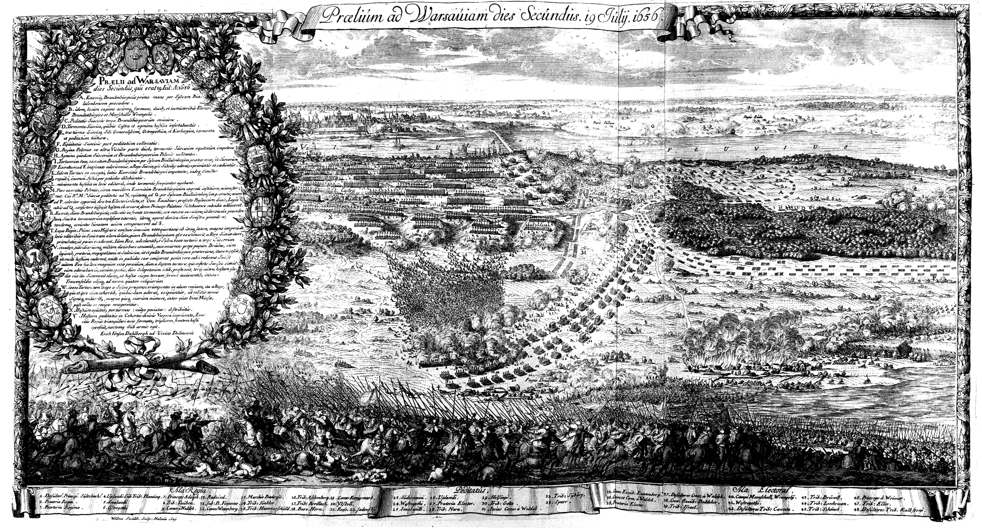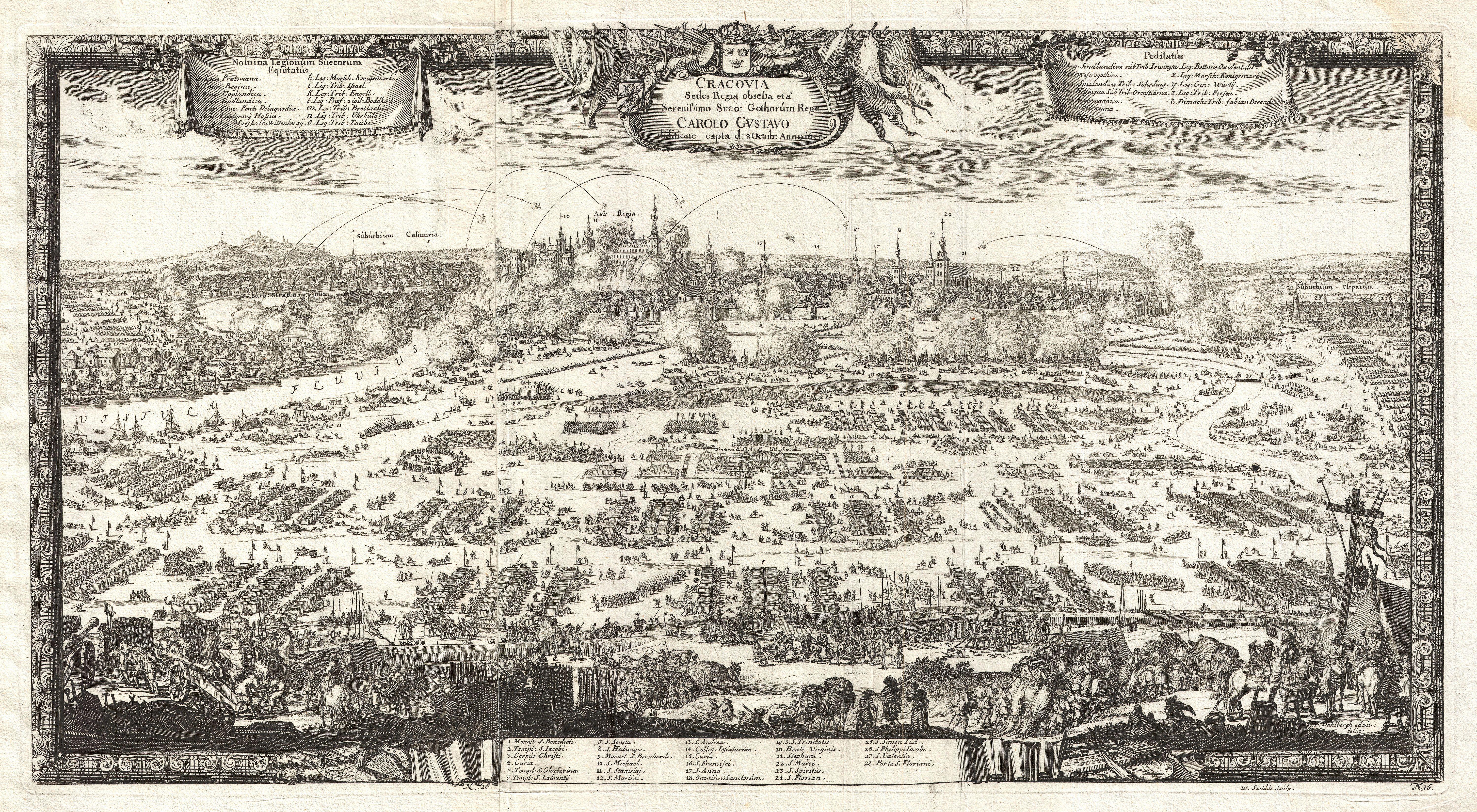 바르샤바 공방전(4월 24일 – 7월 1일)에서 바르샤바는 주요 스웨덴군이 단치히 포위에 바빴기 때문에 아르비드 비텐베르크(Arvid Wittenberg)가 2,000명의 병사와 함께 방어하고 있었다. 비텐베르크는 1656년 7월 1일에 항복했다.