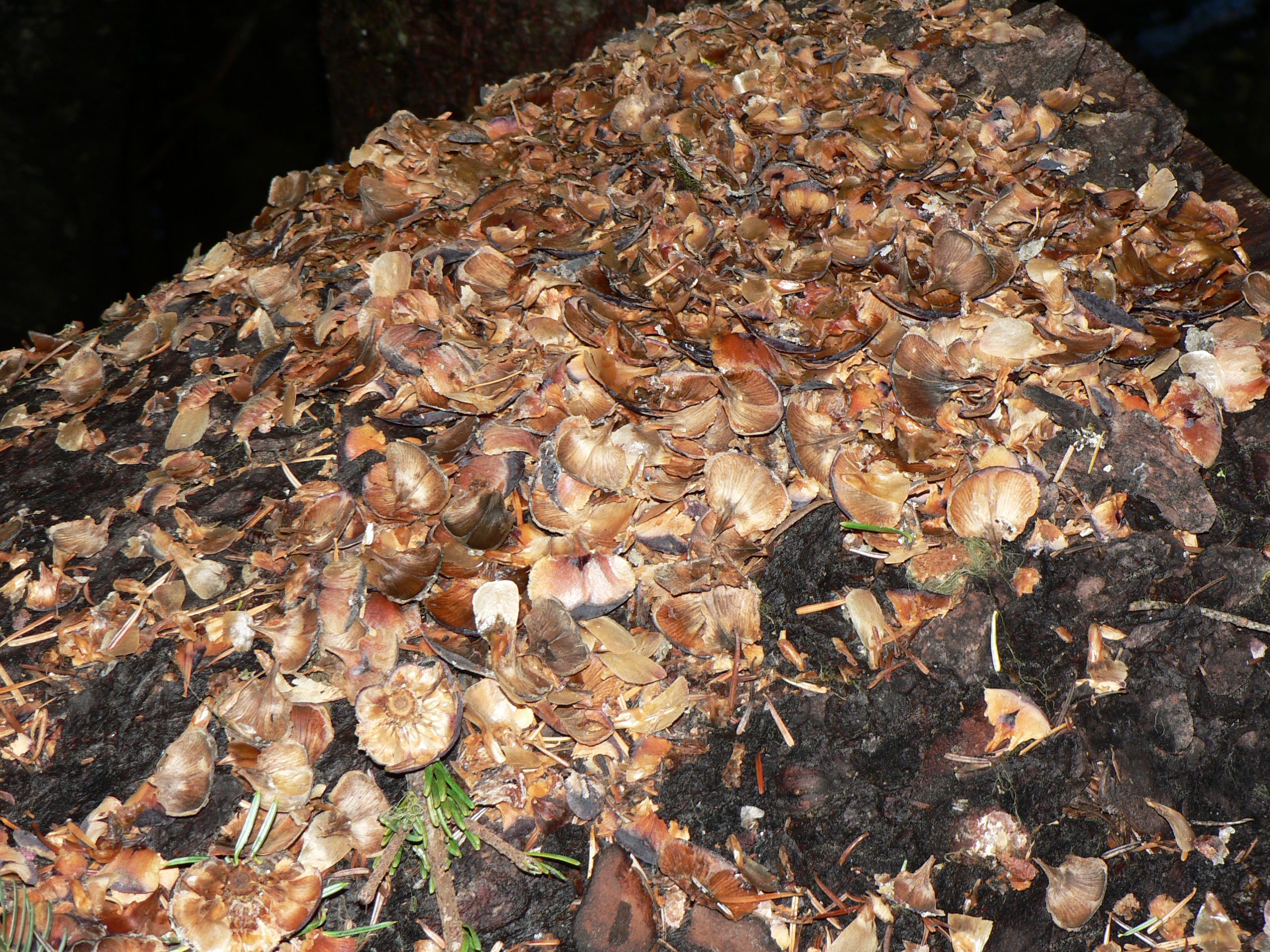 더글라스다람쥐청서는 먹이를 저장하는 동물이며,[7] '미든(midden)'이라고 불리는 단일 장소에 먹이를 모아둔다. 다람쥐가 씨앗을 얻기 위해 구과의 비늘을 벗겨내면 버려진 비늘이 쌓이게 되는데, 여러 세대에 걸쳐 같은 장소를 사용하면서 이 비늘 더미는 몇 미터까지 커질 수 있다.