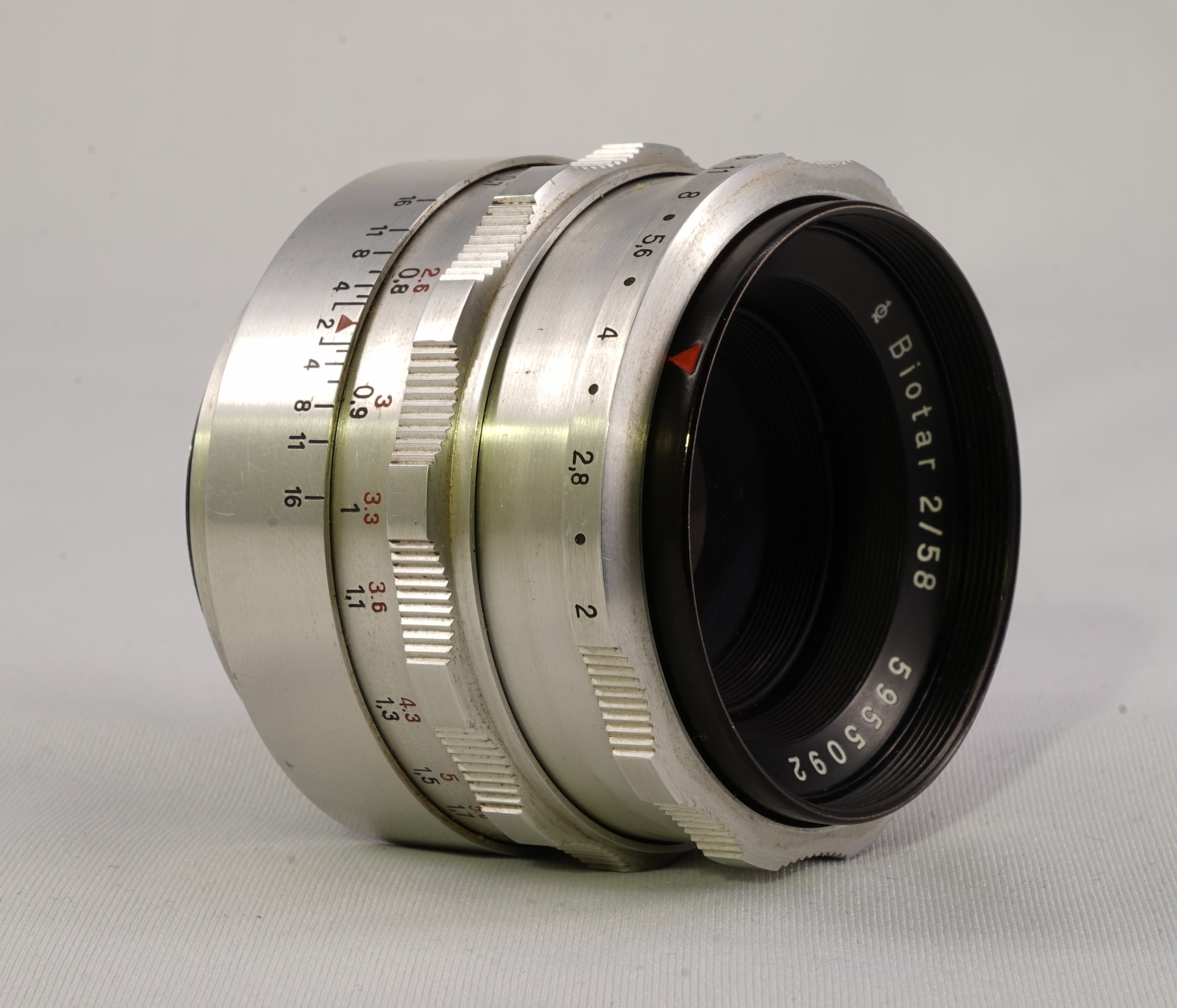 1939년, 35mm 일안 반사식 카메라인 이하게 키네 엑자타에 자이스 ''Biotar'' 58mm F2 렌즈가 사용되었다. 또한, VEB 자이스 이콘 (드레스덴) 콘탁스 S (1949, 동독)의 표준 렌즈로도 사용되었는데, 이 카메라는 최초의 펜타프리즘 아이 레벨 뷰잉 35mm SLR이었다.[7] 제니트 카메라의 소련 58mm F2 ''헬리오스-44'' 렌즈는 ''Biotar''의 가장 흔한 복제본 중 하나였다.[8]