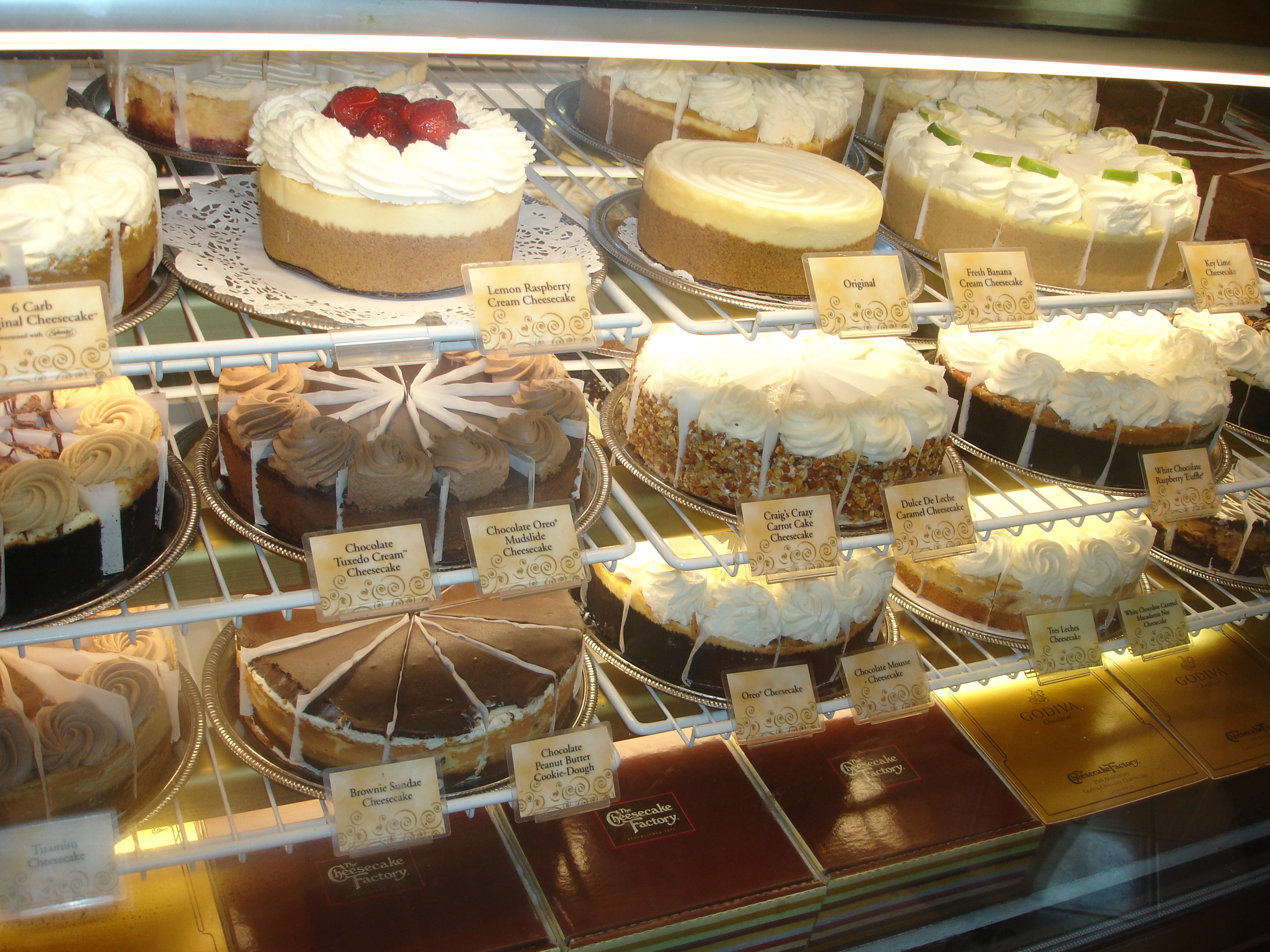 디저트 메뉴는 37가지 맛의 치즈케이크와 일반 케이크,[28] 밀크셰이크, 스페셜티 디저트, 아이스크림 디저트를 제공한다.[29] 회사 대변인에 따르면, 이 식당은 연간 거의 3,500만 조각의 치즈케이크를 판매한다.[30]