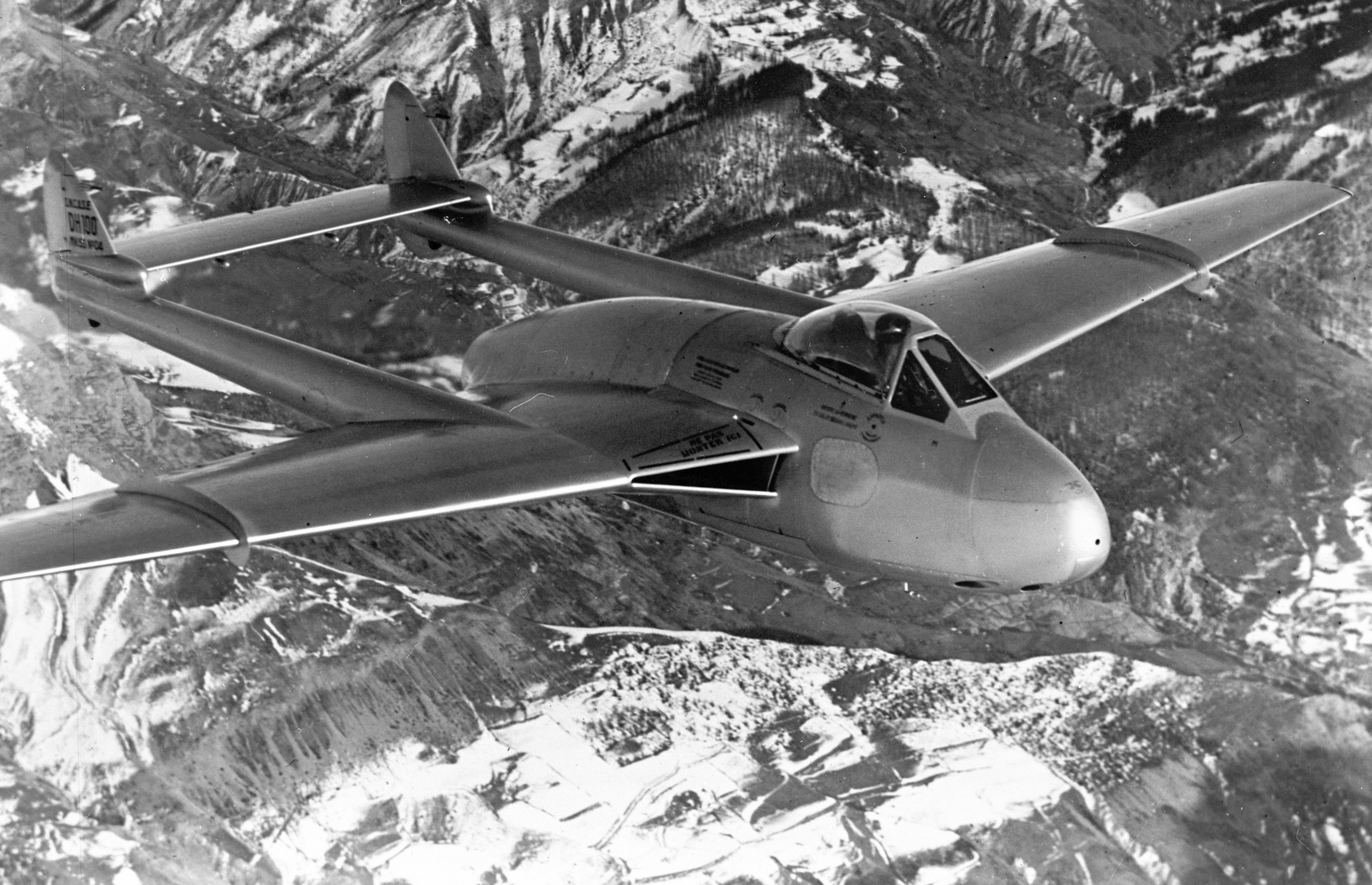 드 하빌랜드 뱀파이어는 제트 엔진을 탑재한 쌍동기로, 주로 전투기와 전폭기 역할에 사용되었다. 항공 작가 프랜시스 K. 메이슨은 드 하빌랜드 뱀파이어를 "영국 전투기 사령부에서 근무한 세련되지 않은 마지막 단일엔진 최전선 항공기"라고 언급했다. 드 하빌랜드 뱀파이어는 오직 수동으로만 조종할 수 있었고, 레이더가 없었으며, 단순한 기체만을 사용하는 비교적 간단한 비행기였으며, 프로펠러를 제외한다면 재래식 기술과 관습이 적용된 비행기였다. 뱀파이어의 독특한 쌍동기체 구성은 1940년대에서 1950년대의 다른 전투기와 비교했을 때 뱀파이어의 유일한 비재래식 특징 중 하나였다.