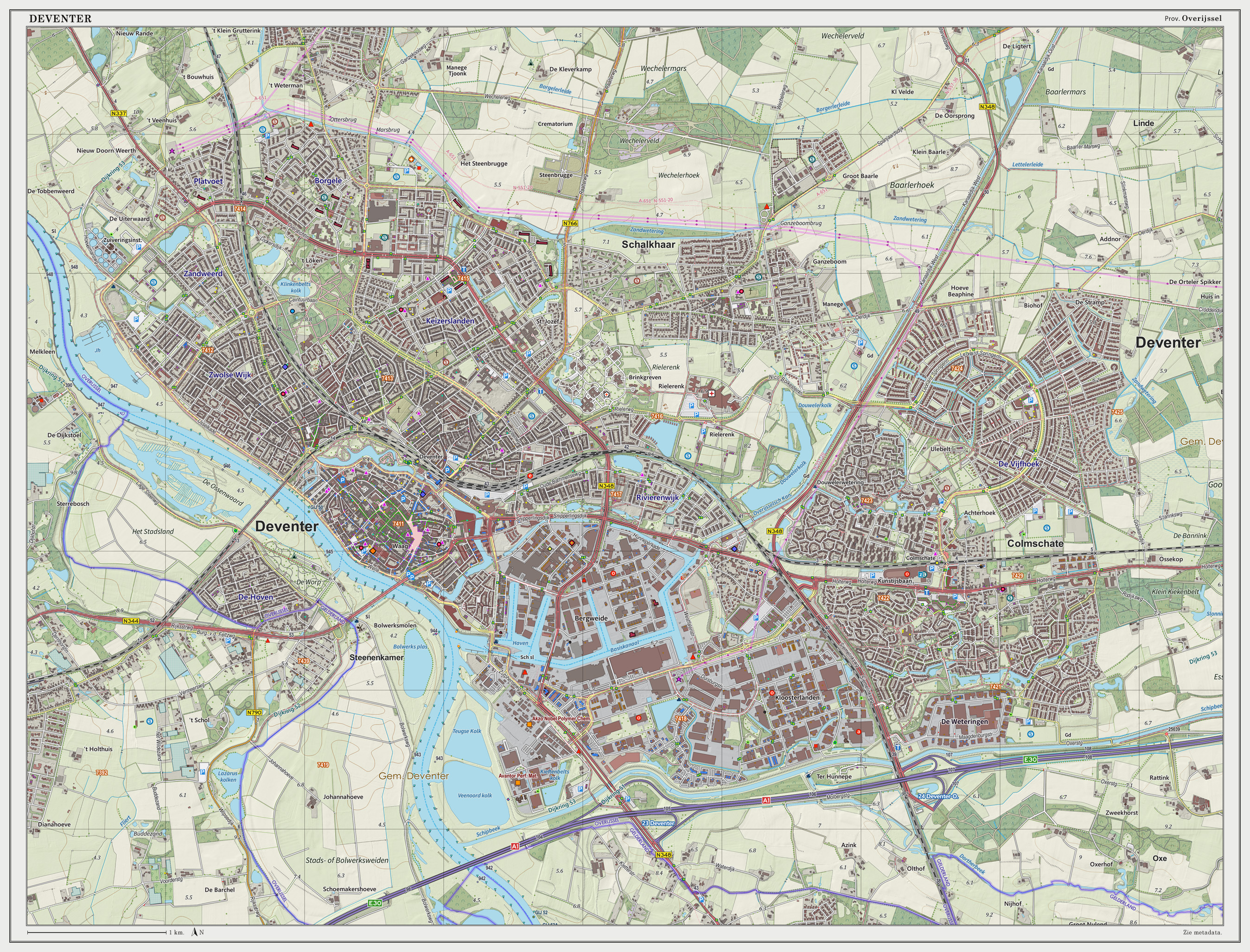 | 데벤터르 | 아이설 강 서쪽의 구역인 데 워프, 시내 중심에서 동쪽으로 약 2km 떨어진 작은 마을인 스니펠링을 포함한다. |