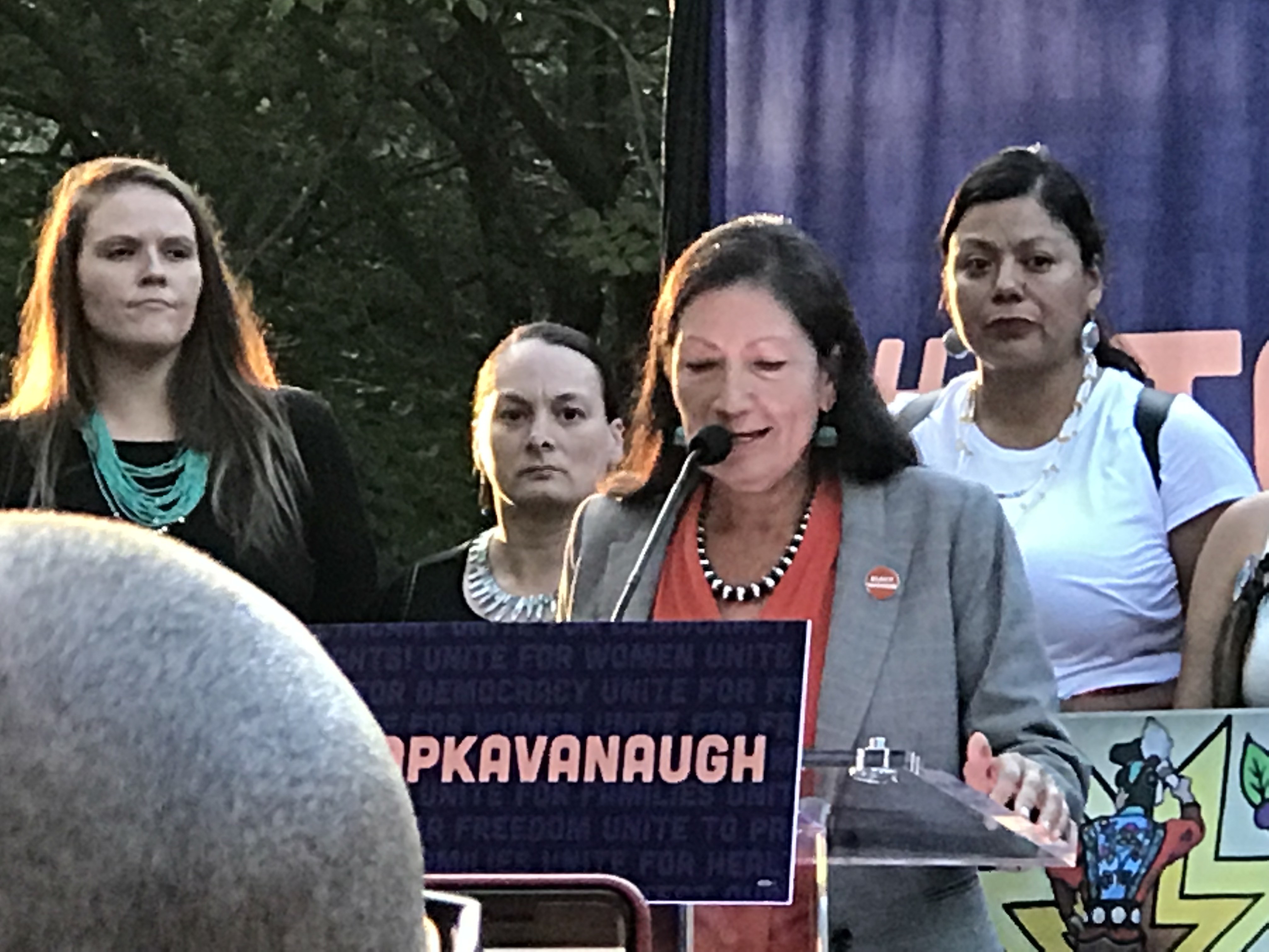 2018년 미국 국회의사당에서 열린 브렛 캐버노 대법관 지명 반대 시위에서 연설하는 할런드