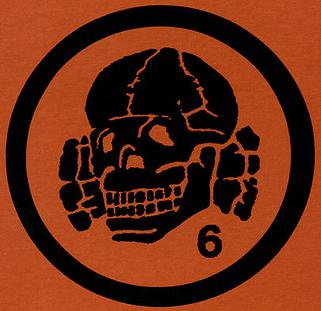 약간 미소를 짓는 해골이 원으로 둘러싸여 있으며 오른쪽 하단에 작은 6이 있는 형태이다. 데스 인 준은 적어도 ''State Laughter / Holy Water'' 7″ 앨범 이후부터 프로이센의 토텐코프 또는 "죽음의 머리" 상징의 변형을 사용해 왔다. 실제로 더글라스 P.는 이 상징이 SS 군인들이 보여준 것과 같은 "집단에 대한 완전한 헌신"을 상징한다고 언급했다.