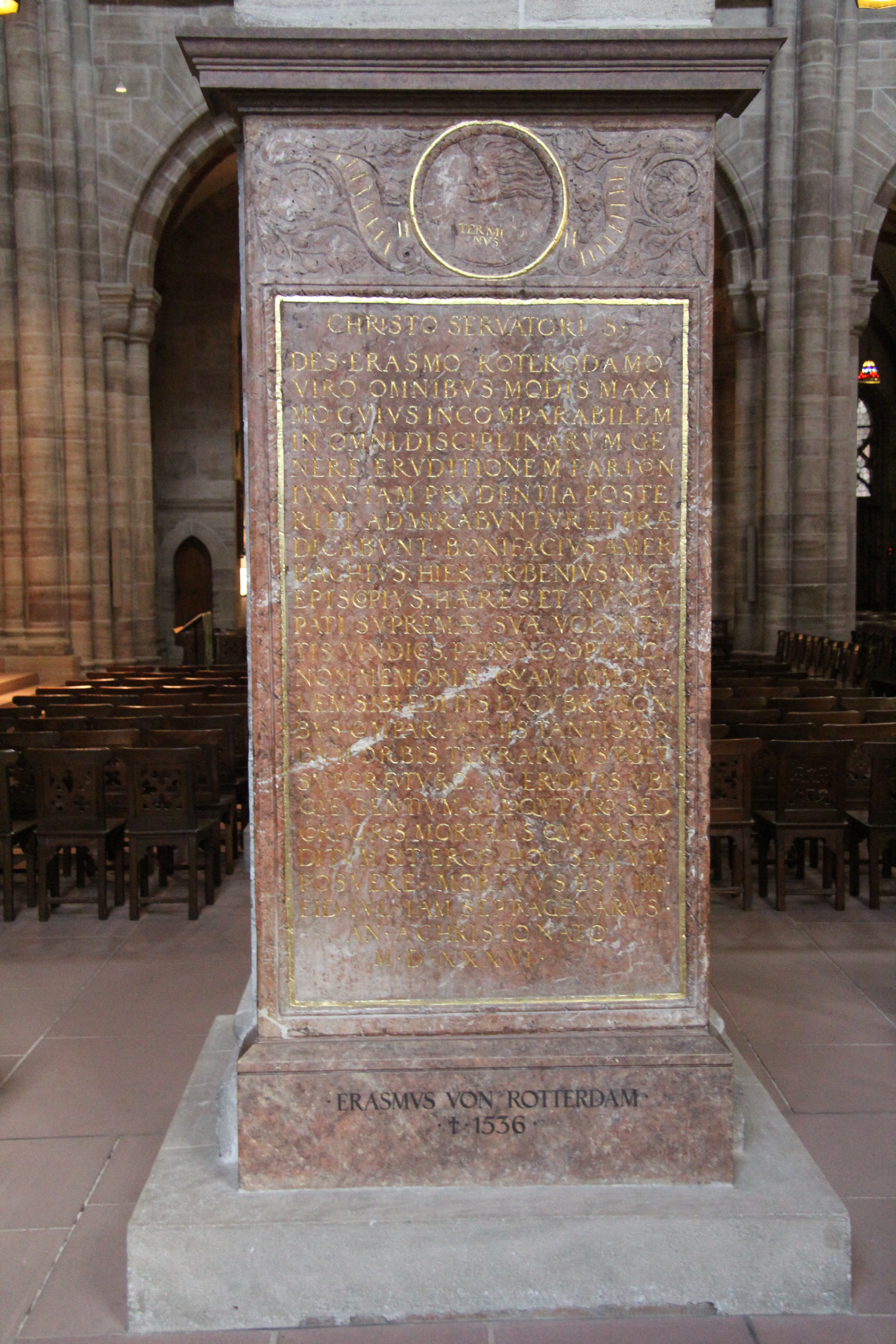 그는 바젤 대성당에 묻혔으며, 개신교 시 당국은 그의 장례식을 가톨릭 위령 미사로 허용했다.[151] 그는 보니파키우스 아메르바흐를 유언 집행인으로 임명하여 학생들과 빈민들을 위한 기금을 마련하도록 했다.[155]
