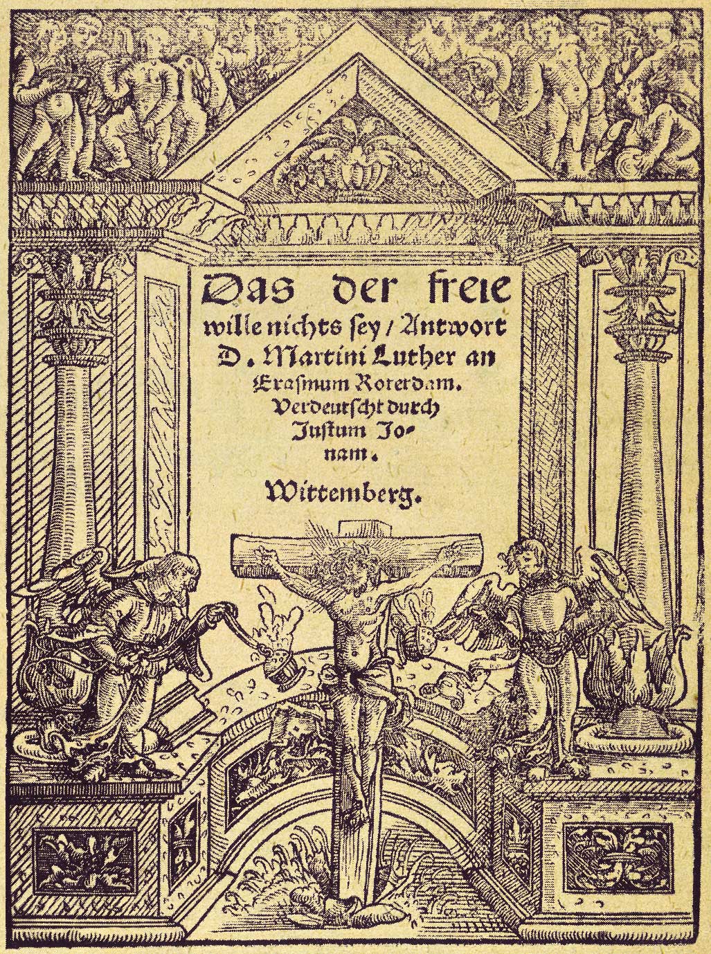 1524년 에라스뮈스는 『자유의지론』을 발표하여 인간의 자유 의지를 부정하는 루터의 예정설을 비판했다.[406][407] 루터는 이에 『노예의지론』으로 반박했고, 에라스뮈스는 다시 『반론』(Hyperaspistes)을 저술하며 자신의 입장을 변호했다.