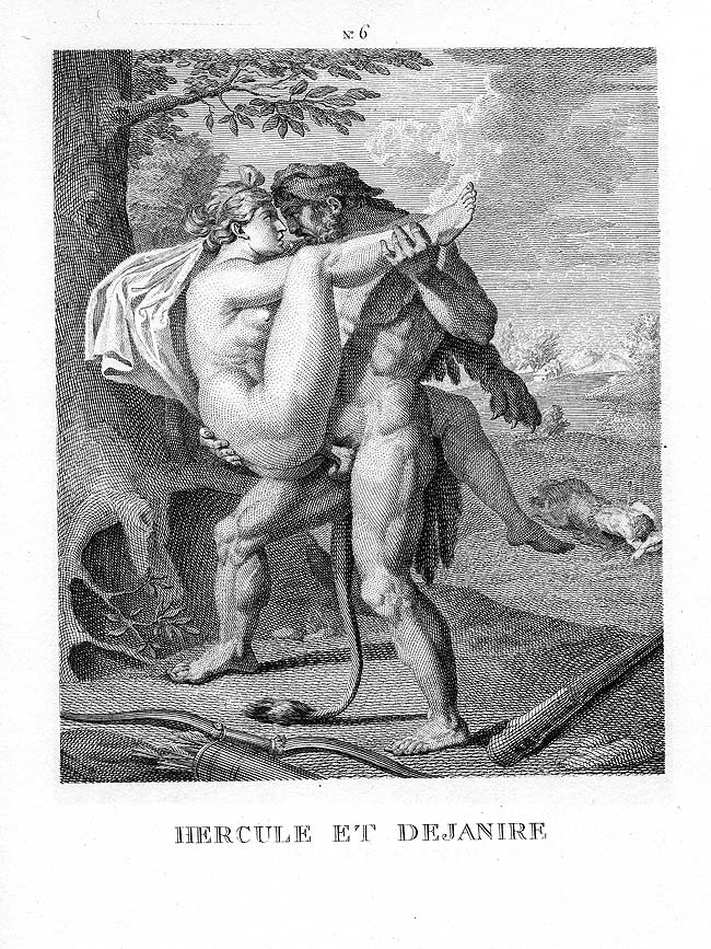 에우에노스 강을 건너던 중 뱃사공 켄타우로스 네소스에게 습격당할 뻔했으나, 헤라클레스가 쏜 히드라의 독화살에 의해 목숨을 구했다.