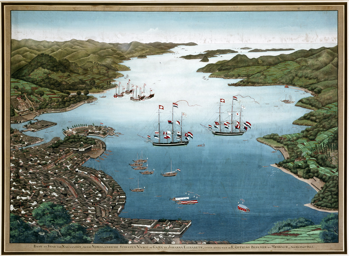 1543년, 포르투갈 상인들이 폭풍에 휩쓸려 다네가시마에 도착하면서 일본과 유럽 간의 직접적인 교류 역사가 시작되었다. 6년 후, 예수회 선교사 프란치스코 하비에르가 가고시마에 상륙했다. 처음에는 포르투갈 상인들이 히라도에 기반을 두었지만, 더 좋은 항구를 찾아 이동했다. 1570년, 다이묘 오무라 스미타다가 가톨릭으로 개종하고 (세례명은 바르톨로메우로 선택) 포르투갈과 나가사키 개발 계약을 체결했으며, 곧 항구는 무역을 위해 개방되었다.1580년, 스미타다는 나가사키의 관할권을 예수회에 넘겼고, 포르투갈은 마카오를 통해 중국과의 비단 무역에 대한 실질적인 독점을 얻었다. 쇼군 도쿠가와 이에미쓰는 나가사키에 거주하는 포르투갈 상인들을 수용하고 그들의 종교 전파를 막기 위해 1634년에 인공 섬 건설을 명령했다. 이것은 이에미쓰가 1633년부터 1639년 사이에 일본과 다른 국가 간의 접촉을 조절하기 위해 발표한 많은 칙령 중 하나였다.