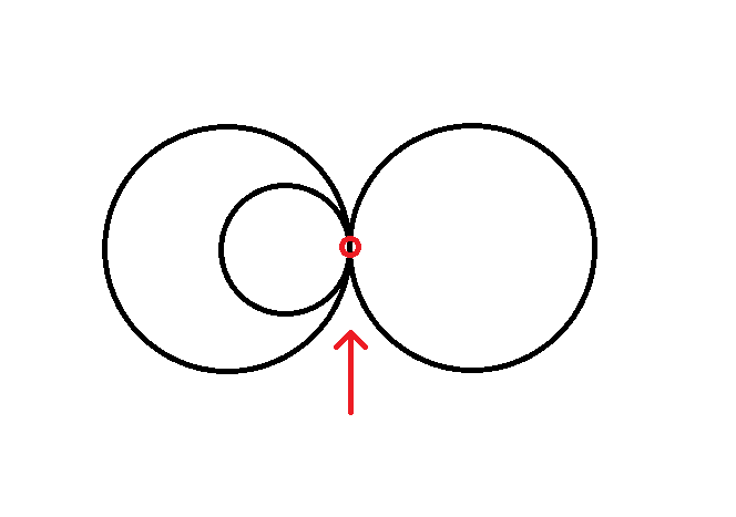 만약 네 원 중 하나(예: )가 다른 세 원에 내접하여 곡률이 음수인 경우 (), 식 (1)은 다음과 같이 된다.