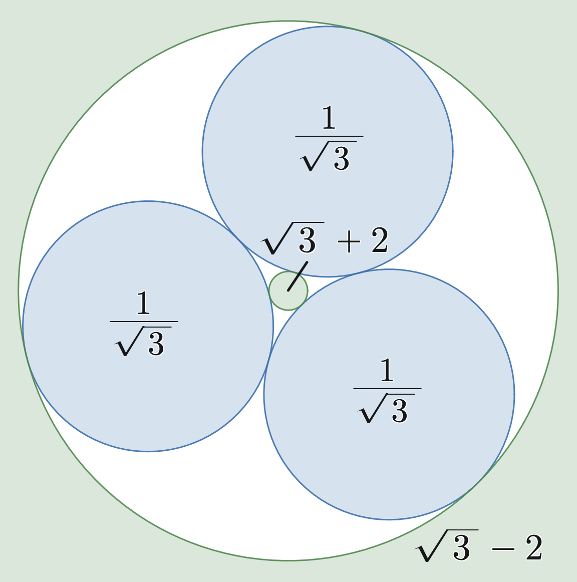 변수 | k는 원의 곡률 (반지름의 역수) k1, k2, k3은 서로 접하는 세 개의 원의 곡률 k4는 이 세 원에 모두 접하는 또 다른 원의 곡률 |
