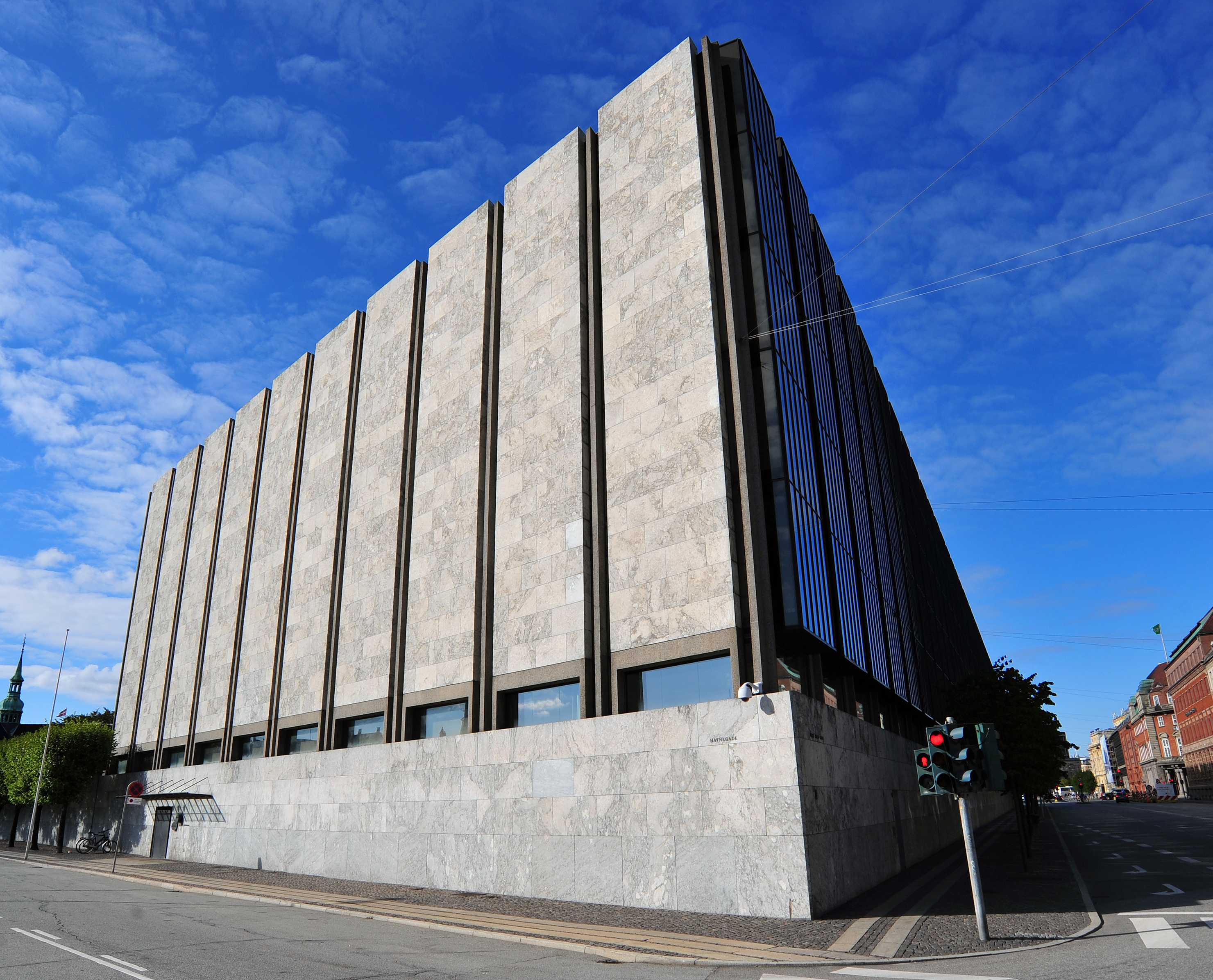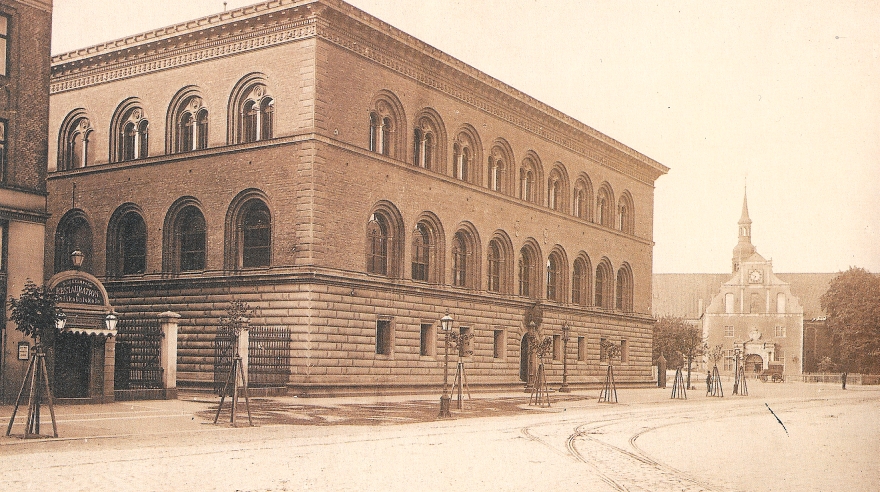 새 건물은 요한 다니엘 헤르홀트가 1866년부터 1870년까지 국립은행을 위해 설계한 르네상스 부흥 건축 양식의 이전 건축물을 대체했다. 이 건물은 피렌체스트로치 궁전에서 영감을 받았다. 덴마크 국립은행은 1870년에 슬로츠홀름스가데에 있던 원래 건물에서 이 건물로 이전했는데, 그 건물(현재는 철거됨)은 18세기에 카스파르 프레데릭 하르스도르프가 설계했다.