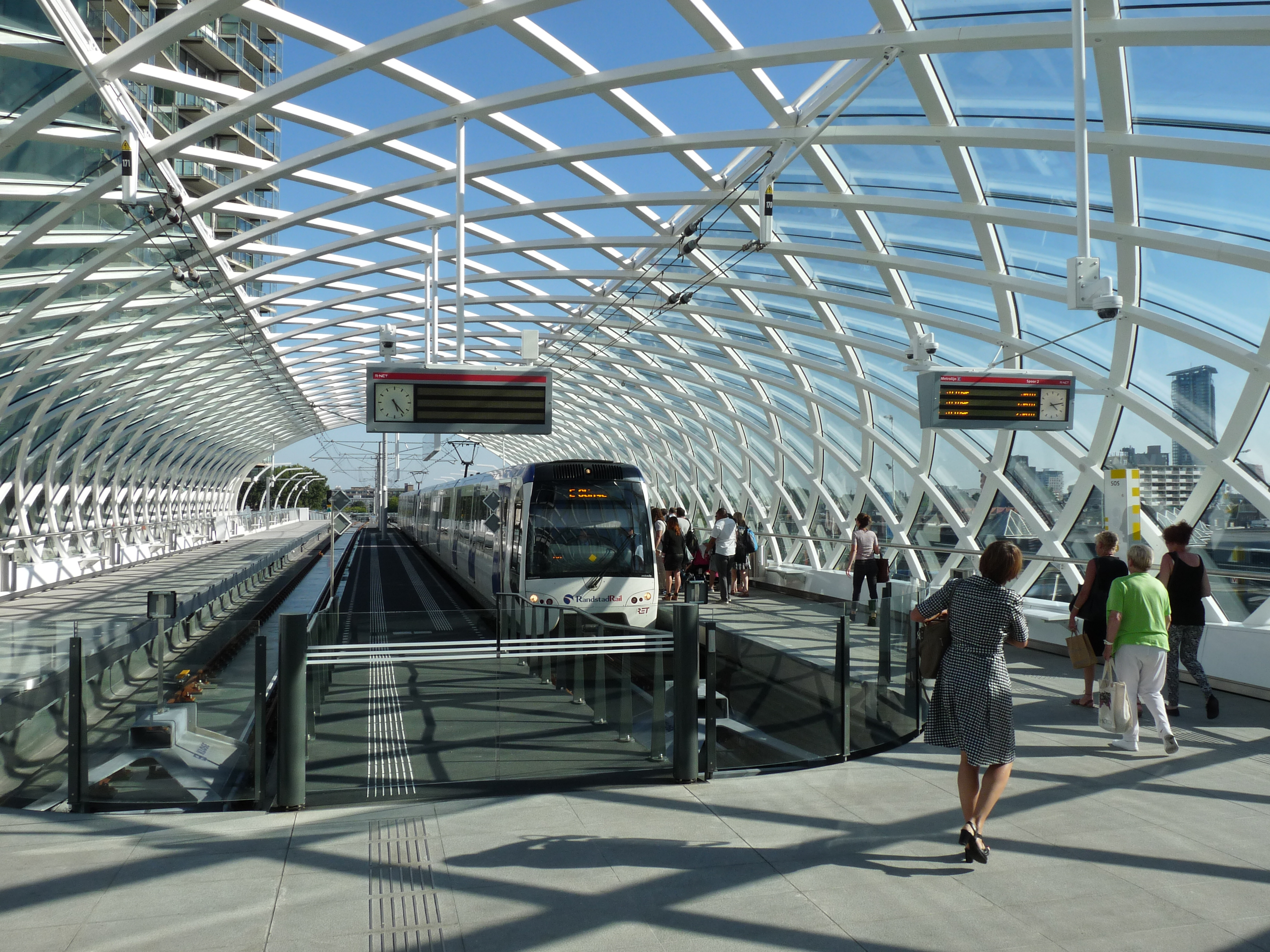 2016년 8월까지는 간선 철도역의 11번과 12번 승강장을 중전철 선로와 함께 사용했다. 이후 두 개의 전용 고가 승강장이 새로 건설되어 사용되기 시작했다. 이 승강장에서 메트로 열차는 고상 상대식 승강장을 이용한다. 저상 섬식 승강장은 비상시에만 사용되는데, Beatrixkwartier|베아트릭스크바르티르nl를 통한 연결 선로를 이용할 수 없을 경우 란드스타트레일 트램이 이 승강장을 사용한다.