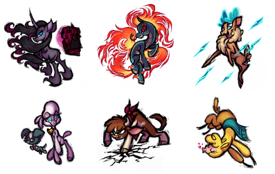 Mane6는 "파이터 메이커 2D" 엔진을 사용하여 《마이 리틀 포니: 우정은 마법》 팬 게임을 개발하기 시작했다. 초기에는 3버튼 격투 시스템이었으나, 이후 "마법" 버튼을 추가하여 4버튼 시스템으로 변경되었다. 이들은 《마이 리틀 포니》의 주요 캐릭터 6명을 기반으로 한 격투 게임을 만들고자 했으나, 2013년 해즈브로부터 중지 및 중단 명령을 받았다.[9]