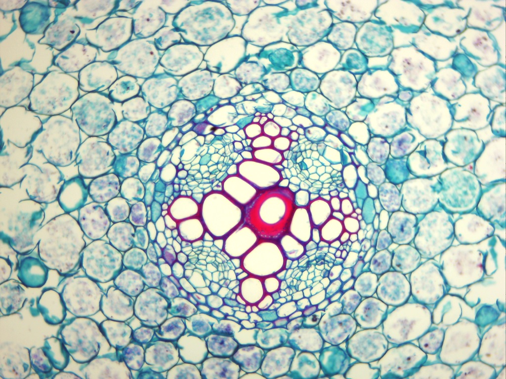 관다발 식물에서 물을 뿌리에서 줄기로 전달하는 조직인 물관부의 관상 요소(도관 요소, 가도관)는 줄기나 뿌리의 정단 분열 조직에서 유래하는 전형성층 또는 측면 분열 조직인 유관속 형성층에서 형성된다.[34] 이러한 세포는 확대 및 신장하면서 분화를 시작하며, 처음에는 일차 세포벽만으로 둘러싸여 있다. 일차 세포벽의 셀룰로스 미세 섬유는 비교적 거칠기 때문에 세포의 확대 및 신장이 가능하다.[34]
