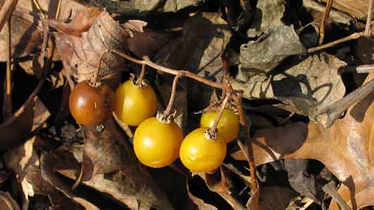 열매는 지름 1.5cm 정도의 공 모양이며, 열매 밑부분에는 꽃받침이 남아 있다. 익으면 노란빛을 띤 주황색이 되어 방울토마토와 비슷해 보이지만, 식물 전체에 솔라닌이라는 독성 물질이 있어 먹을 수 없는 유독 식물이다. 가축이 먹으면 중독되어 죽을 수도 있다. 또한, 맛있어 보이는 열매 때문에 아이들이 토마토로 착각하고 먹을 위험이 있어 주의가 필요하다. 번식력이 강해 골치 아픈 잡초로 여겨지기도 한다.