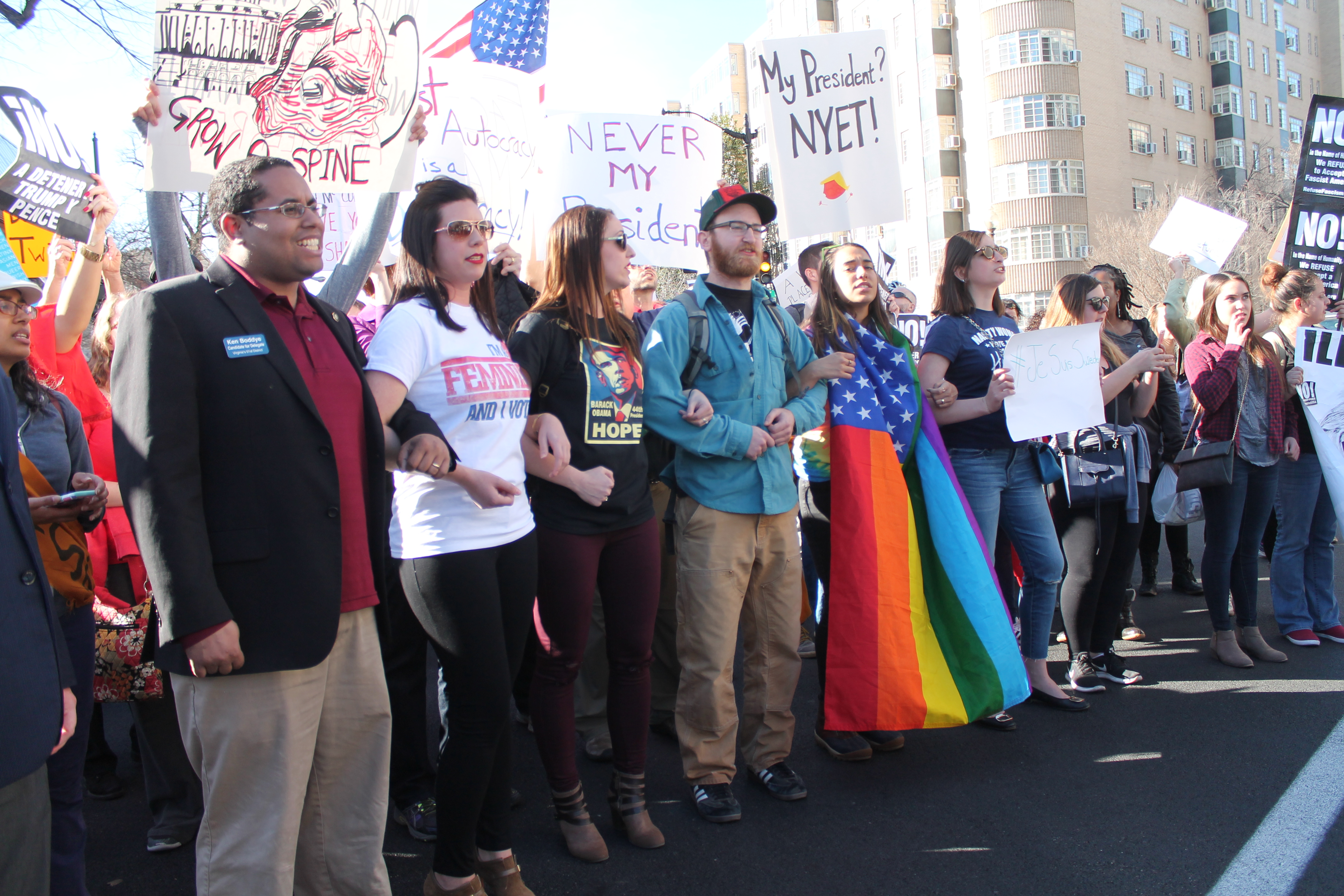 시위대는 행정명령 13769 또는 여행 금지/무슬림 금지/무슬림 여행 금지로 영향을 받는 무슬림의 권리 상실, LGBT 사람들의 권리 상실, 미국과 멕시코 사이의 국경 장벽 제안 등에 반대했다.[79][85] 케이티 페리, 리아나, 브루스 스프링스틴, 조안 바에즈, 톰 모렐로와 같은 음악가들이 시위에 대한 지지를 표명했다.[86]