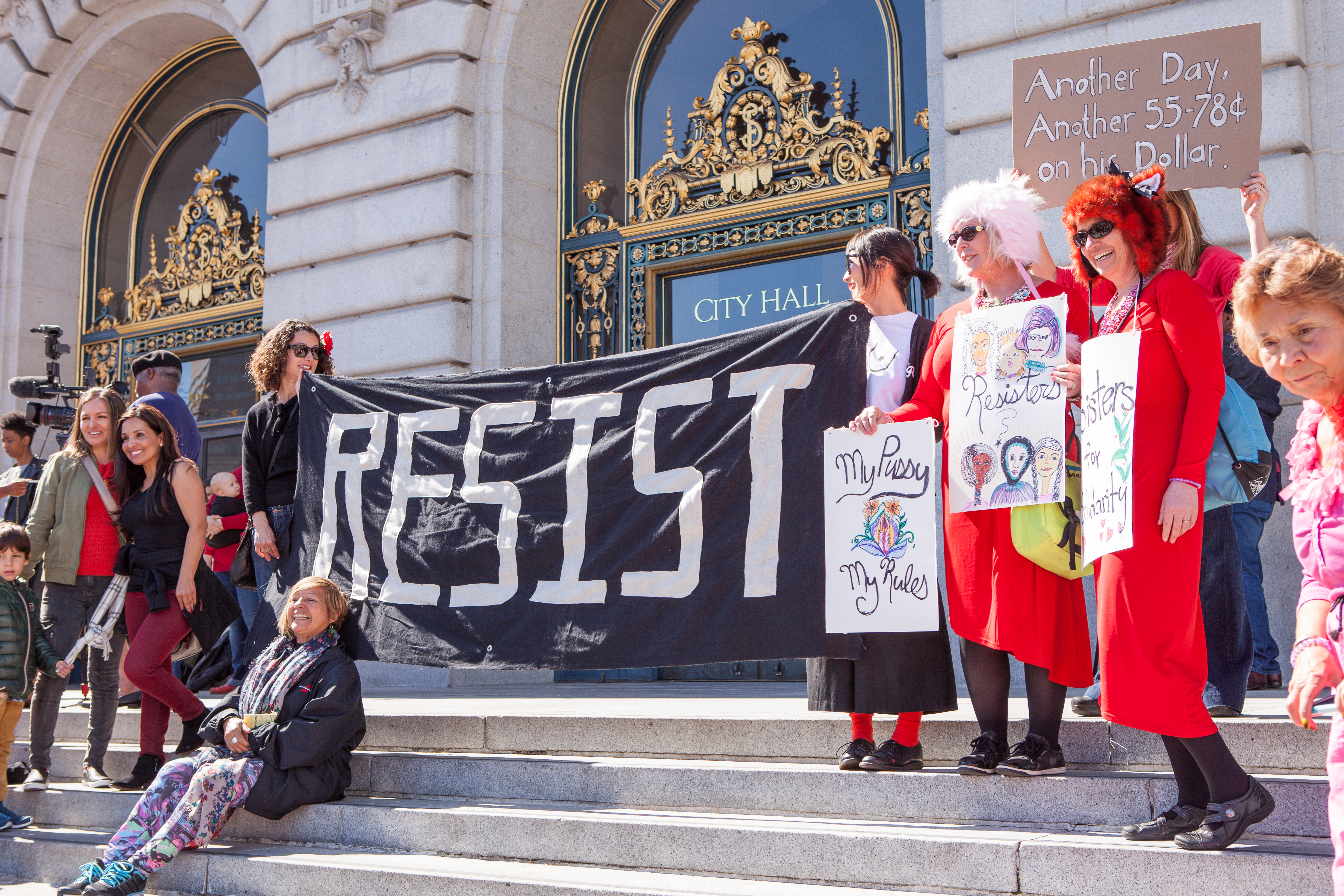 많은 시위대는 반 트럼프 운동을 "저항"이라고 불렀다.[80] 여성들이 많은 조직 및 자원봉사 활동을 주도하고 있다.[81] 또한, 많은 참가자들이 처음 시위에 참여했다.[90][82] 시위대는 Indivisible 및 SwingLeft와 같은 지역 단체를 조직하는 데 참여하게 되었다.[83]