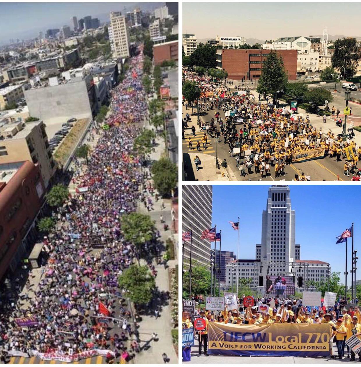 로스앤젤레스에서는 1월 19일, 비가 오는 날씨에도 불구하고 수천 명이 평화 시위에 참여했다.[138] 시위대는 로스앤젤레스 시청 밖에서 집회를 열었다.[139]