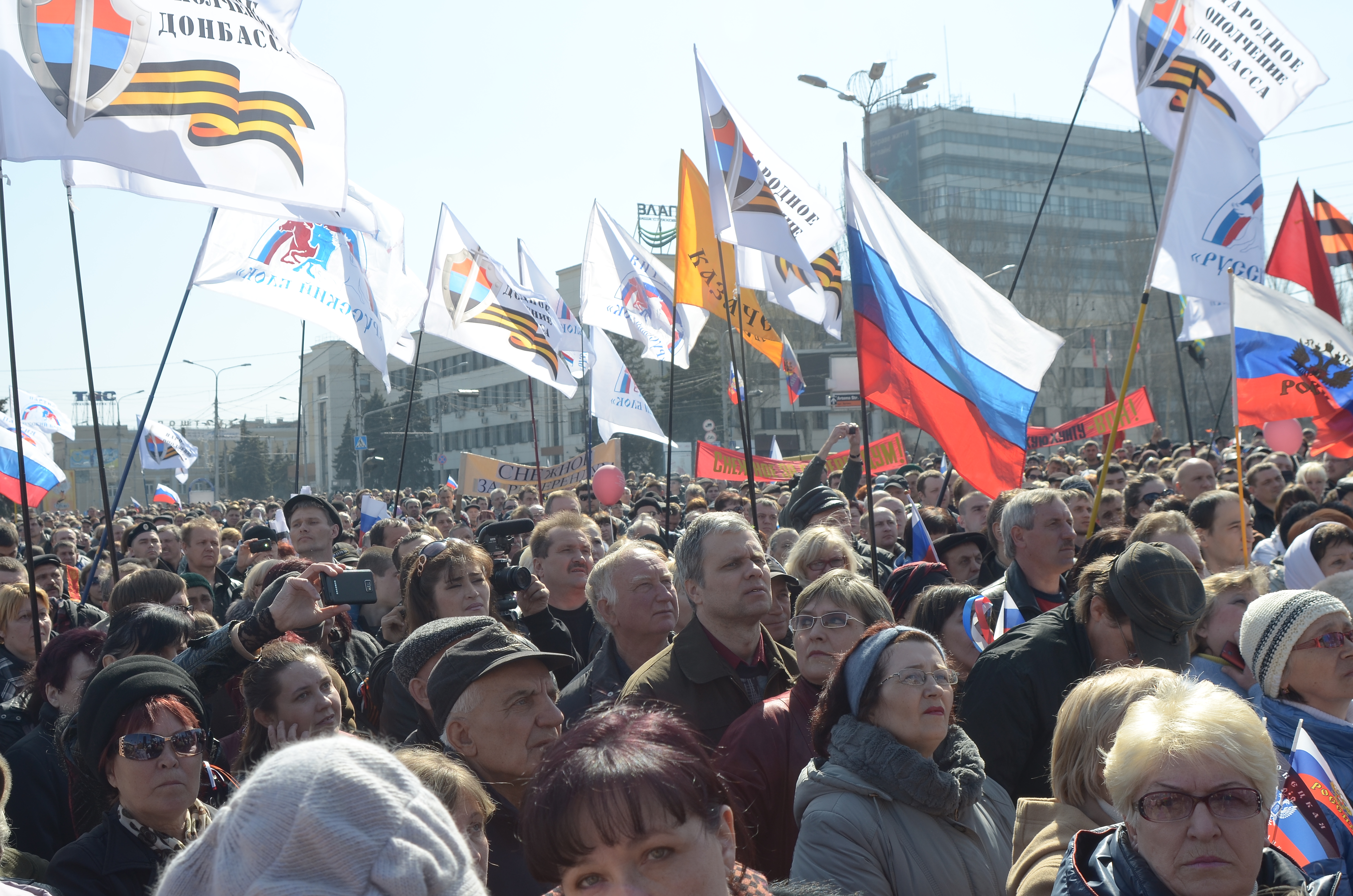 유로마이단 이후와 크림반도의 미래에 대한 2014년 크림 반도 주민투표 결과 발표의 영향으로 도네츠크주 의회는 주의 미래를 결정하기 위해 주민투표를 실시하기로 결정했다.[88] 2014년 3월 3일, 많은 사람들이 도네츠크주 행정청사에 난입하여 러시아 국기를 휘날리며 “러시아!”와 “베르쿠트는 영웅이다!”라고 외쳤다. 경찰은 반격하지 않았다.[89] 같은 주 후반 도네츠크 당국은 지역 지위에 대한 주민투표를 비난했고,[90] 경찰은 도네츠크주 청사를 탈환했다.[91][92] 도네츠크는 중심지 중 하나가 되었다.