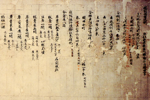전국 시대 1567년 미요시 삼인중과 마쓰나가 히사히데에 의한 도다이지 대불전 전투로 인해 대불전을 포함한 도다이지의 주요 당탑은 다시 한번 소실되었다. 1573년 오다 노부나가는 도다이지를 전란에 휘말리게 하는 것과 난폭한 행위를 하는 자에 대한 엄벌을 통달하는 서장을 보냈다.[56]