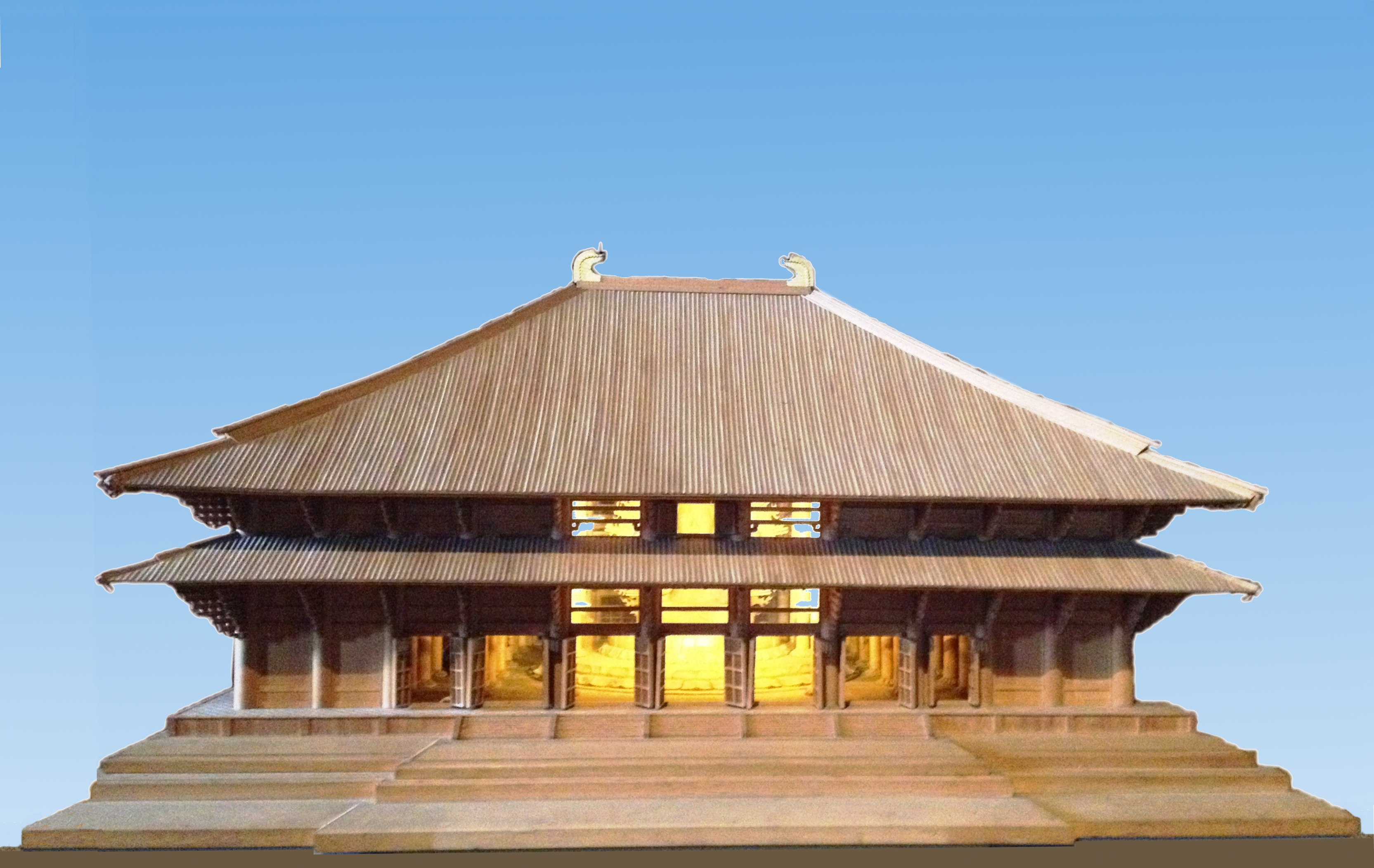 - 건립 초기: 쇼무 천황은 어린 나이에 죽은 황태자의 명복을 빌기 위해 와카쿠사야마 기슭에 금종사(金鐘寺)를 건립했는데, 이것이 도다이지의 기원이다. 이후 금종사는 야마토국의 고쿠분지 겸 총국분사로 지정되었고, 747년 대불 주조가 시작되면서 '도다이지'라는 이름이 사용되기 시작했다. 743년 쇼무 천황은 대불 조립 조서를 발표하고 자향락궁에서 조성을 시작했으나, 745년 수도가 헤이조쿄로 돌아오면서 현재의 도다이지 위치에서 대불 조립이 재개되었다. 752년 대불 개안공양이 거행되었고, 758년 대불전이 준공되었다.