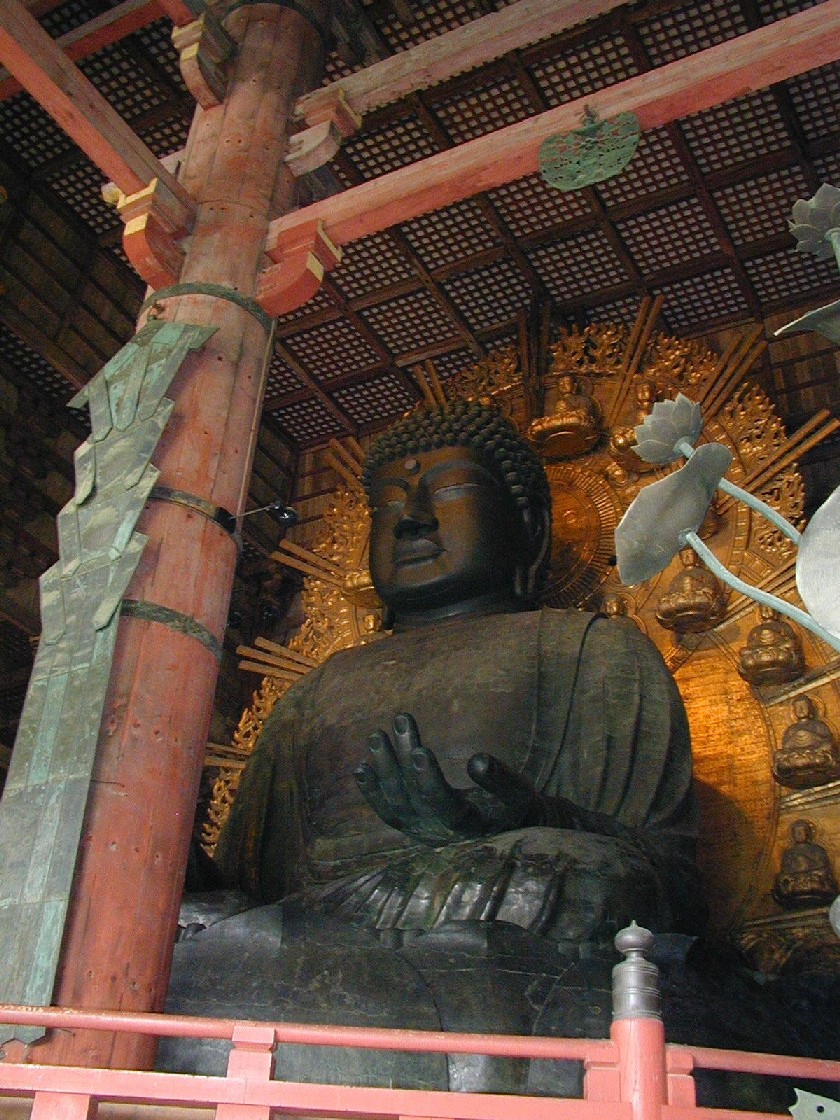 743년 쇼무 천황은 백성들이 불교 사찰 건립에 직접 참여해야 한다는 법령을 반포했다. 교키는 제자들과 함께 기부를 요청했고, 260만 명이 넘는 사람들이 대불과 대불전 건립에 참여했다.[13] 16m 높이의 불상은 3년에 걸쳐 8번 주조되었고, 751년에 완성되었다. 752년 불입식(개안식)에는 1만 명의 승려와 4천 명의 무용수가 참석했으며, 인도 승려 보리선이 쇼무 천황을 위해 의식을 거행했다.[19]
